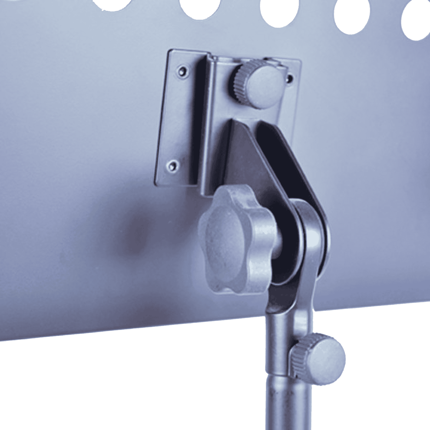 Leggio professionale per orchestra con borsa di trasporto, facilmente smontabile per un ingombro minimo durante il trasporto.
