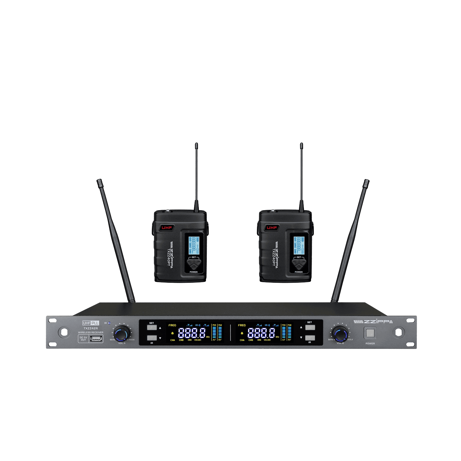 Sistema radiomicrofono ZZIPP TXZZ422 a canali UHF 2×48 CH con 2 bodypack