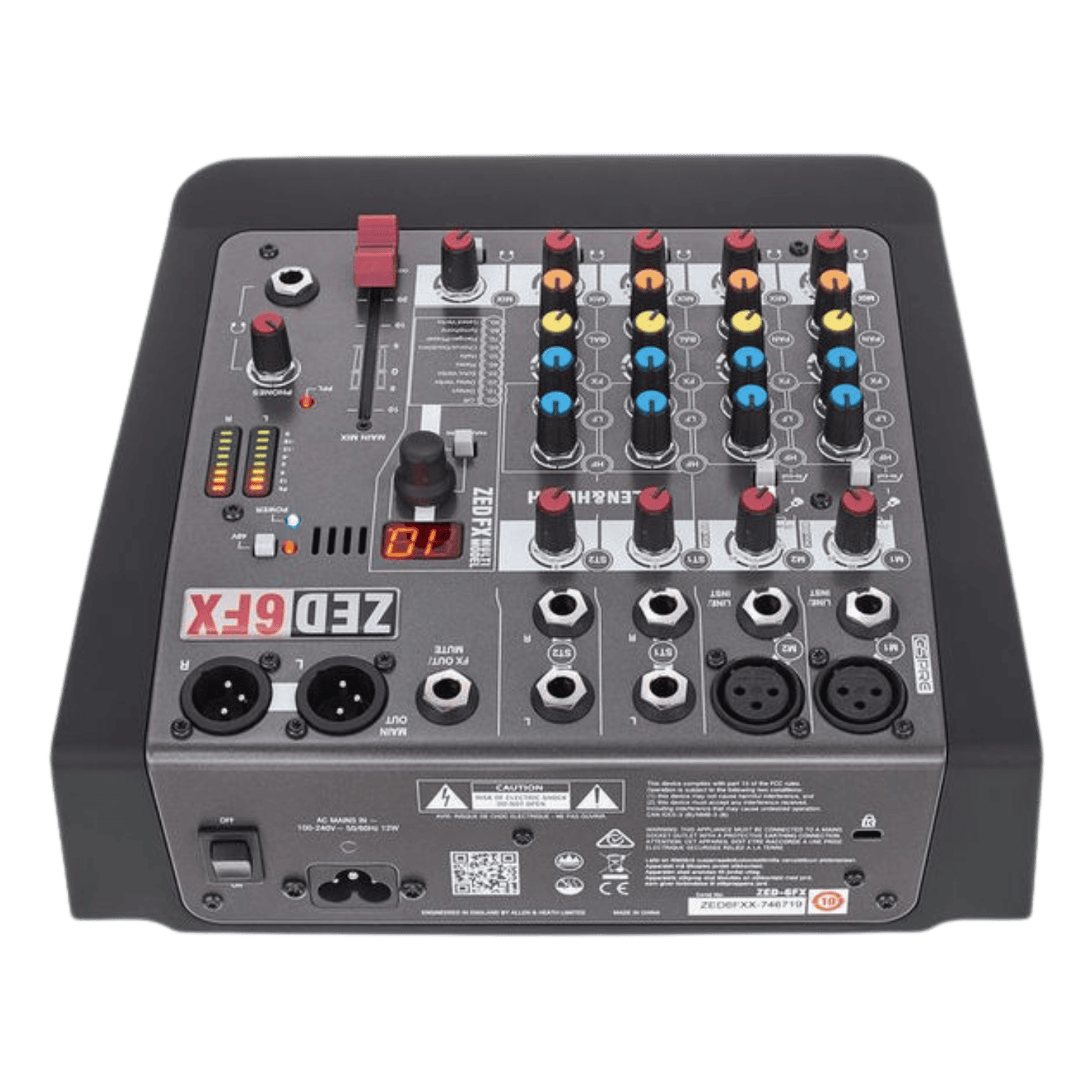 ZED-6FX unisce la rinomata costruzione e lโeccellenza audio Allen & Heath in un formato compatto e portatile, e rappresenta la scelta ideale per musicisti consapevoli della qualitร , cantautori e locali. Che si tratti di far musica in casa, esibirsi dal vivo o registrare tracce da condividere su YouTube e Soundcloud, ZED-6FX รจ un compagno versatile in ogni fase del percorso creativo. Con il preamplificatore GSPre boutique di nuova progettazione, ZED offre una headroom massiccia con un rumore eccezionalmente basso. ZED-6FX รจ il primo mixer ad integrare una suite di reverb, delay ed FX speciali multi-modello creata appositamente dagli esperti Allen & Heath. Ai chitarristi farร piacere sapere che ZED-6FX nasce con un paio di DI ad alta impedenza per chitarra, per collegare lo strumento direttamente al mixer senza dover munirsi di box DI separate.