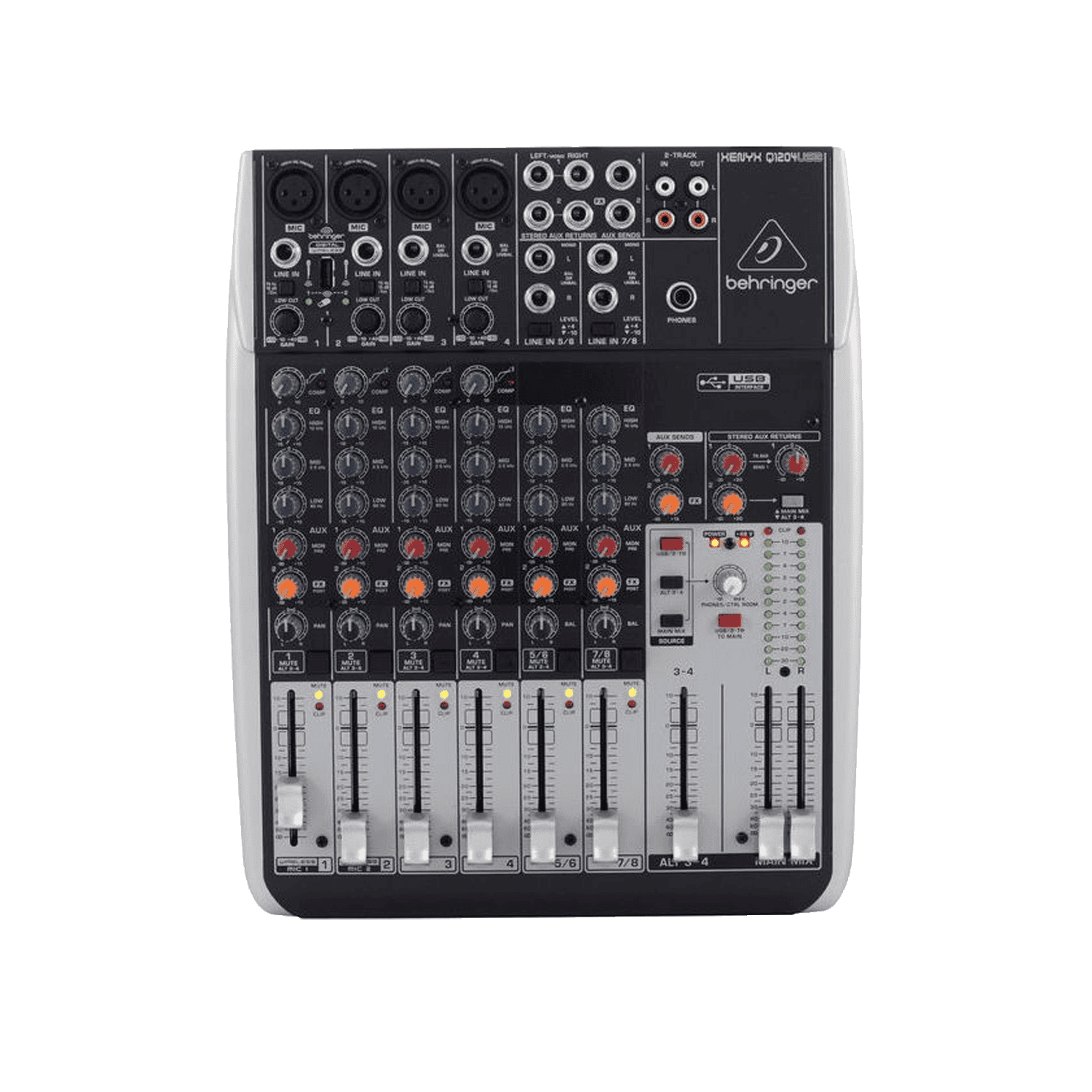 Il Behringer Xenyx Q1204Mixer USB รจ un mixer analogico che consente di ottenere un suono eccezionale grazie ai quattro preamplificatori di qualitร studio Xenyx e versatile canale EQ. Progettato sia per performance live e sessioni di registrazione in studio, il mixer con USB integrato, consente di registrare direttamente dal mix sul tuo Mac/PC.