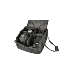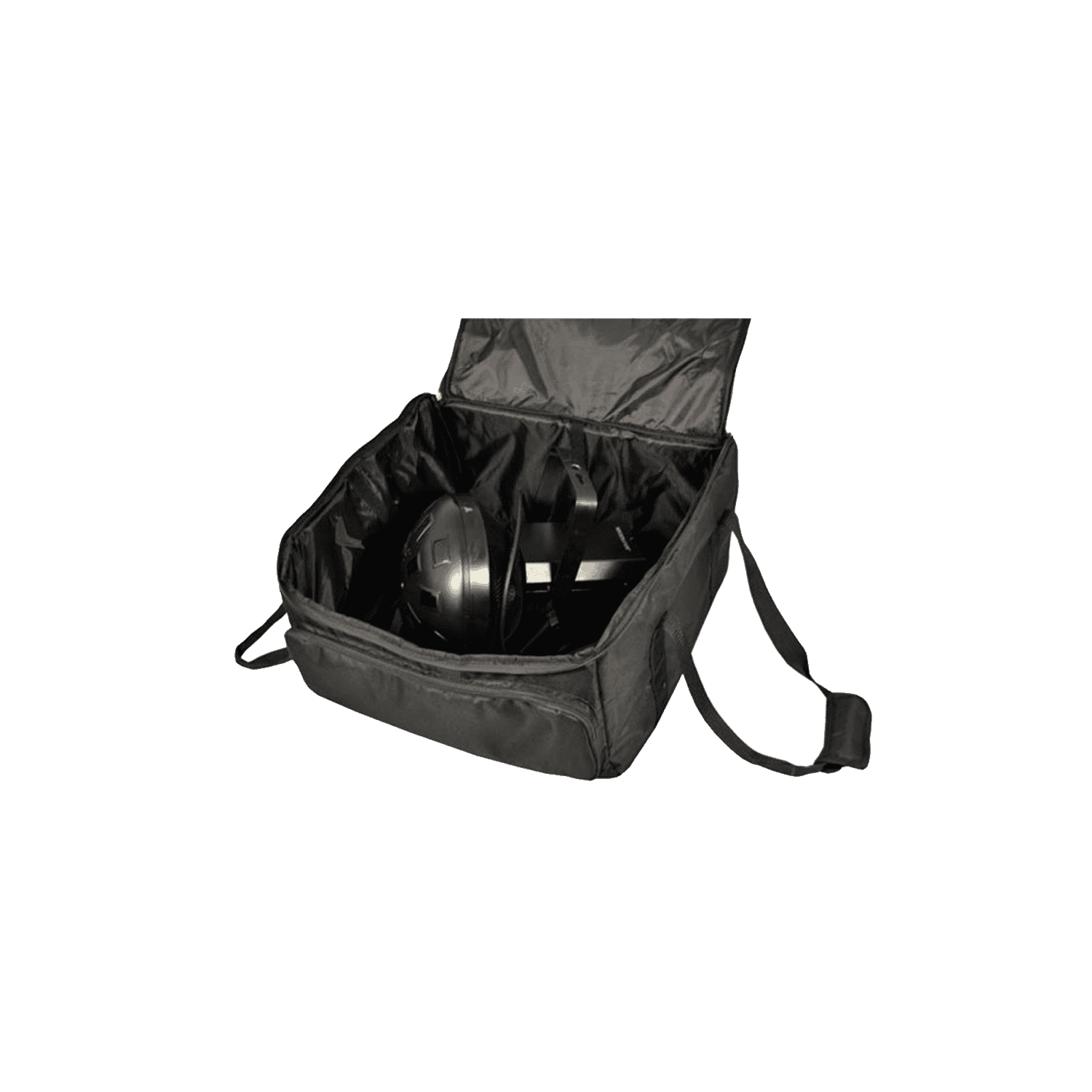 Borsa per il trasporto in tela rinforzata. Dotata di una robusta maniglia per il trasporto, una tasca frontale porta accessori, un’imbottitura in spugna, separatori in velcro e una pratica e robusta chiusura zip doppia. Ideale per teste mobili e faretti