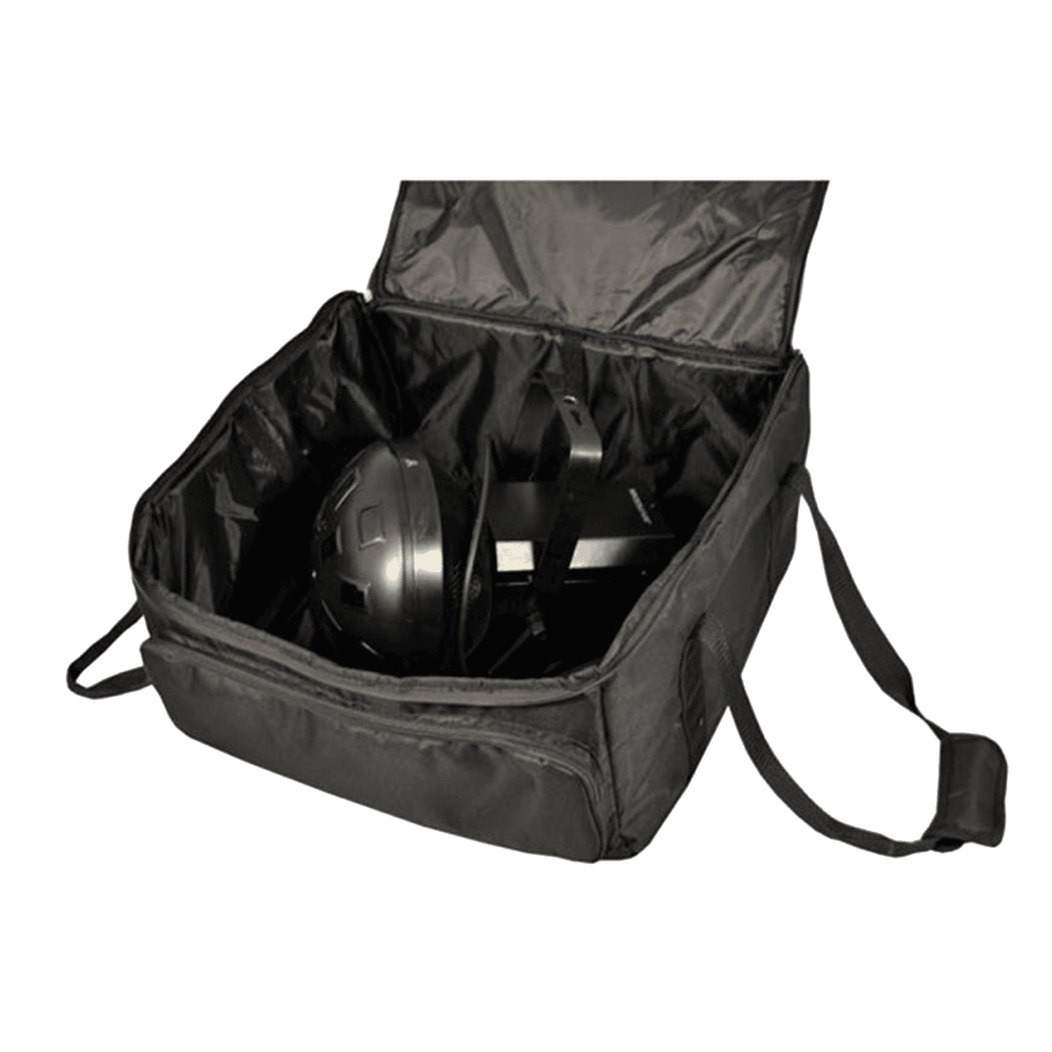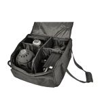 Borsa per il trasporto in tela rinforzata. Dotata di una robusta maniglia per il trasporto, una tasca frontale porta accessori, un’imbottitura in spugna, separatori in velcro e una pratica e robusta chiusura zip doppia. Ideale per teste mobili e faretti