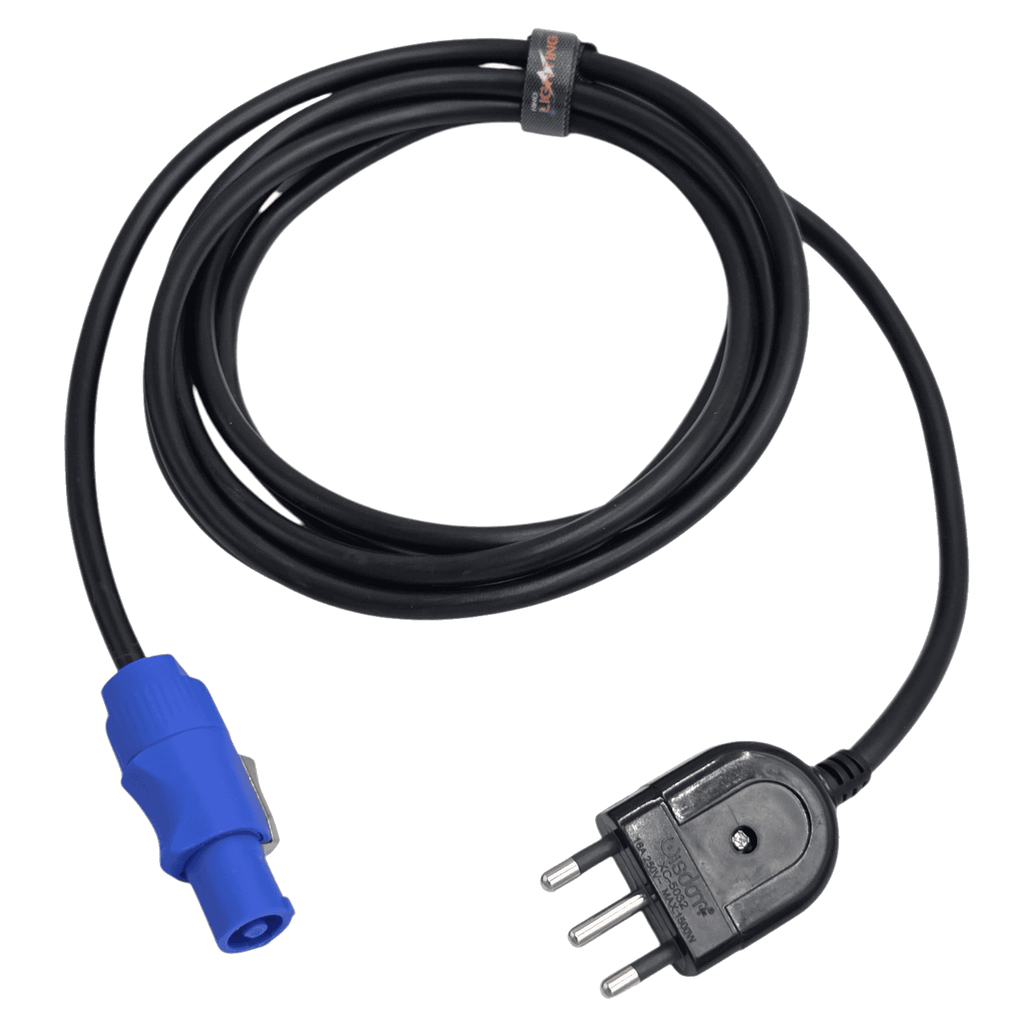 Cavo di alimentazione con presa di alimentazione civile Italiana e ingresso PowerCon per luci DJ e del palcoscenico lunghezza di 3 m. Ideale per teste mobili come ad esempio: testa mobile LED wash, beam, spot e così via. È un dispositivo plug-in e può quindi essere collegato e scollegato sotto carico e sotto tensione. Il cavo in gomma risulta flessibile e resistente.
