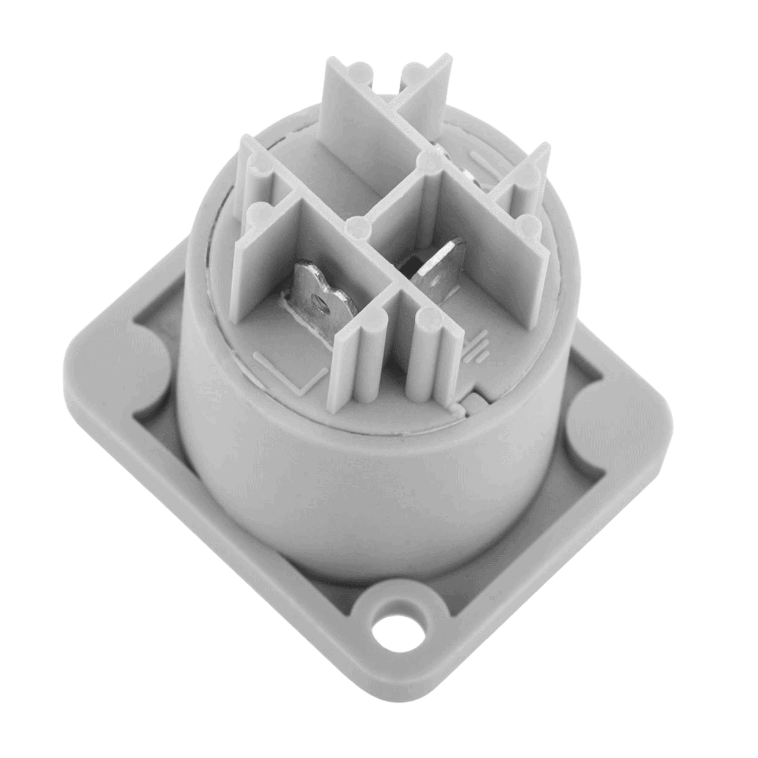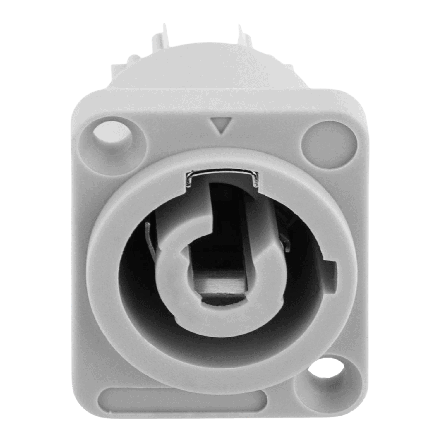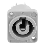 Connettore powercon grigio da pannello, puรฒ essere montato su pannelli o dispositivi. Il connettore grigio viene utilizzato per lโuscita dellโalimentazione, quindi per rilanciare lโalimentazione da un dispositivo a un altro vicino, in questo modo si ottengono dei cablaggi piรน ordinati, ad esempio nel caso in cui ci fossero molti dispositivi montati su unโamericana o sul palco, sarร sufficiente passare un numero ridotto di cavi. Supporta un amperaggio di massimo 16A. Il connettore รจ realizzato con plastiche solide e durature e con un sistema di blocco anti disconnessione.
