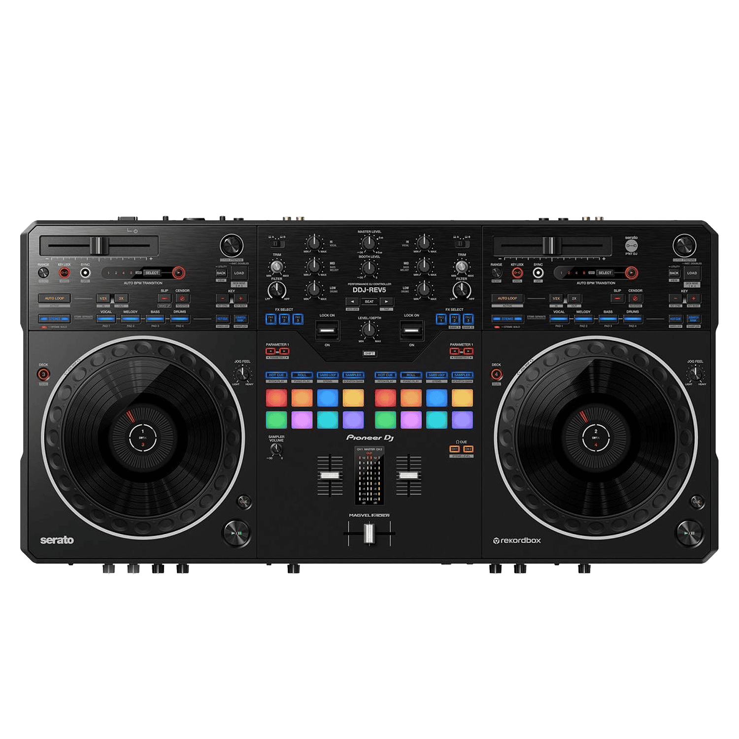 Il DDJ-REV5 รจ una console di nuova generazione compatibile con Serato DJ Pro e rekordbox. Questa unitร a 2 canali offre unโautentica esperienza di scratching e caratteristiche innovative, come le ampie jog wheel, il MAGVEL FADER, i pulsanti dedicati per il controllo degli stem, la prima transizione automatica dei BPM e la modalitร Piano Play.