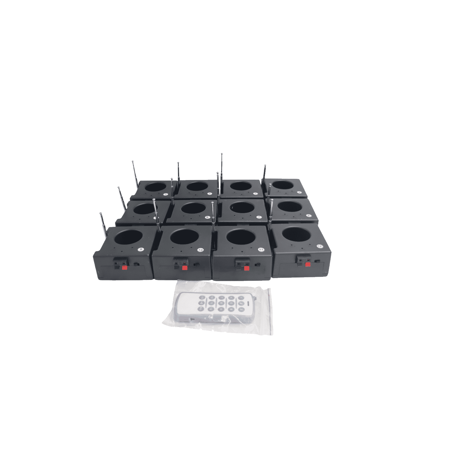 Kit Valigetta di 12 Accenditori a Pile per Fontane Medie e Mini pirotecniche Usa e Getta con Telecomando