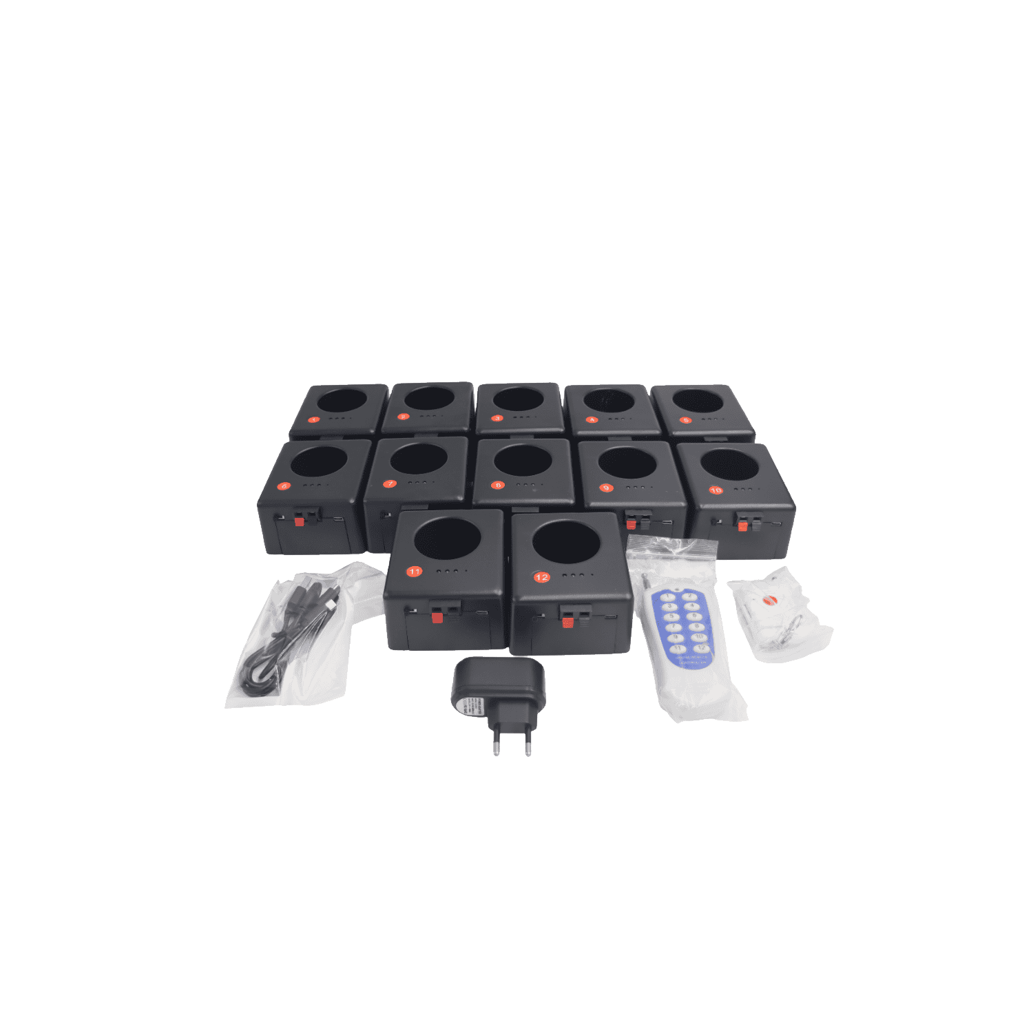 Kit valigetta accenditori da 12 pezzi per Fontane Medium e Mini fredde pirotecniche con doppio telecomando e cavo di ricarica