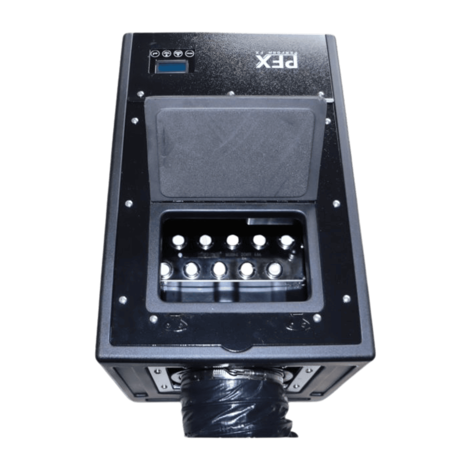 La macchina del fumo basso a ultrasuoni PFX Aqua Mini, grazie alla nuova tecnologia AQUA รจ in grado di produrre l’effetto fumo basso senza la necessitร di utilizzare ghiaccio o sistemi refrigeranti, ma sfruttando solo gli ultrasuoni che appesantiscono il fumo permettendogli di creare un grande effetto a terra. La temperatura puรฒ essere controllata tramite microchip. La macchina tramite un sistema di protezione della pompa, si ferma quando il liquido o lโacqua terminano. ร fornita di un tubo e dissipatore in metallo, รจ provvista di ruote che ne rende semplice il trasporto.