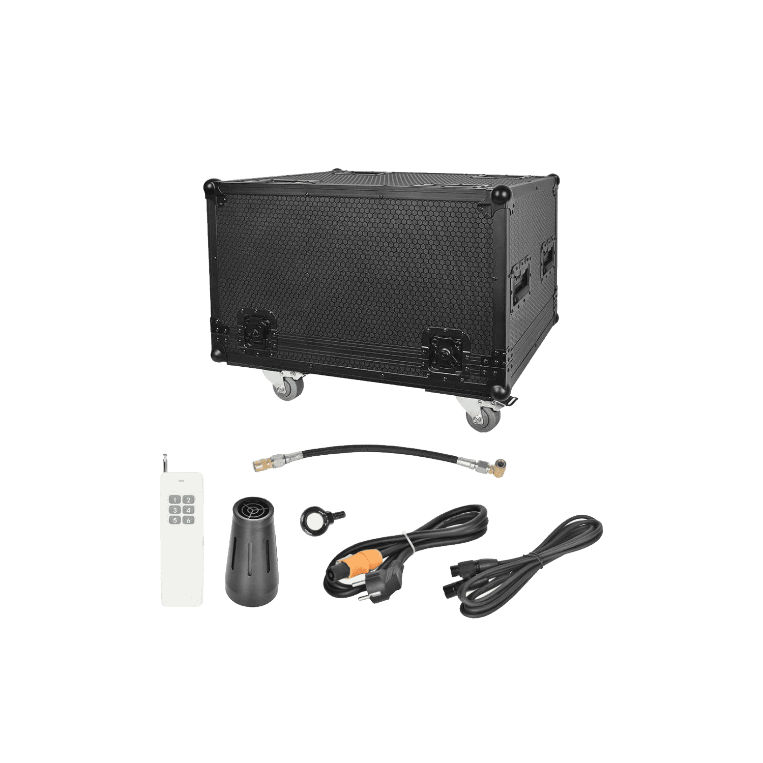 - Fornito con flightcase cavo di alimentazione e telecomando.