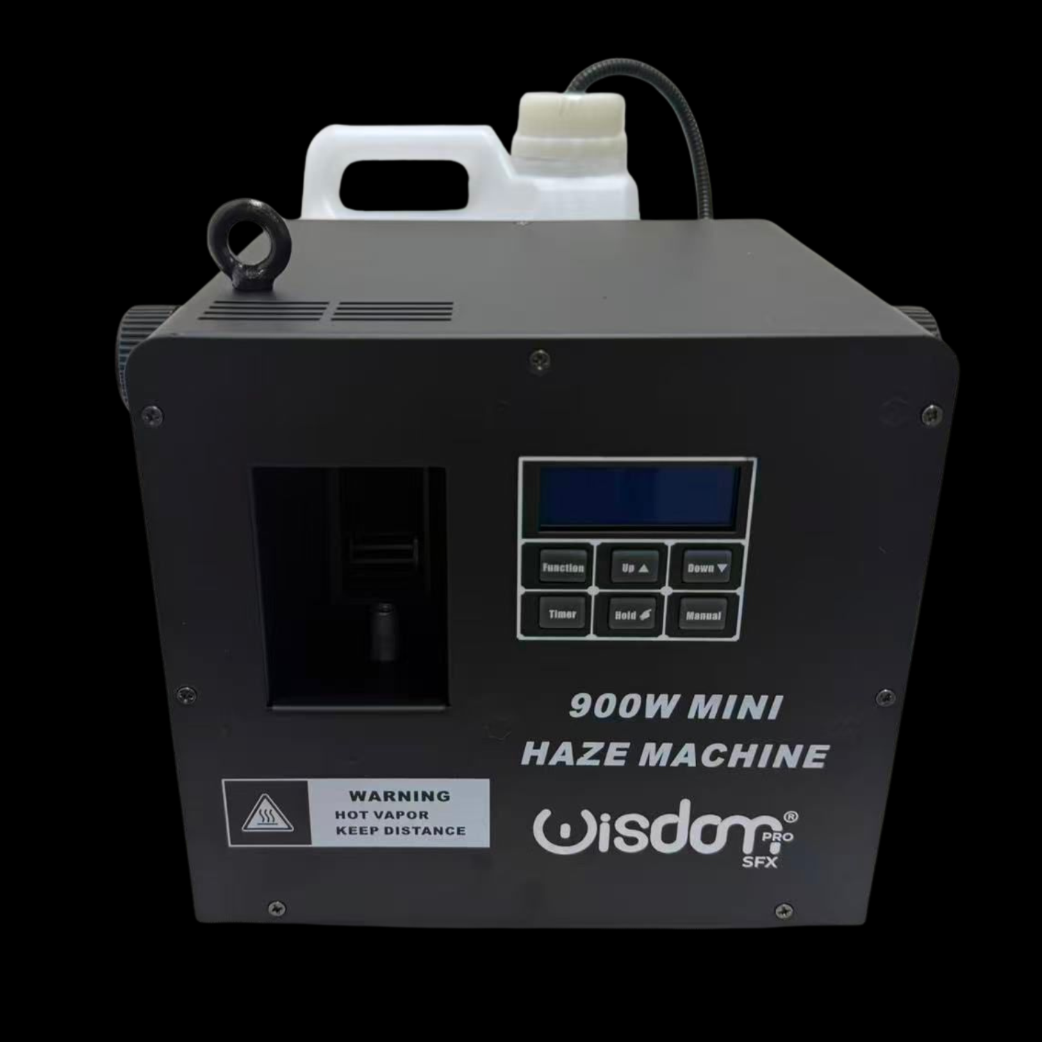 Macchina hazer 900W professionale con controllo DMX, display LCD e telecomando. Generatore di nebbia ideale per eventi live, DJ set, teatro e impianti luci professionali. Effetto atmosferico uniforme e prestazioni affidabili.