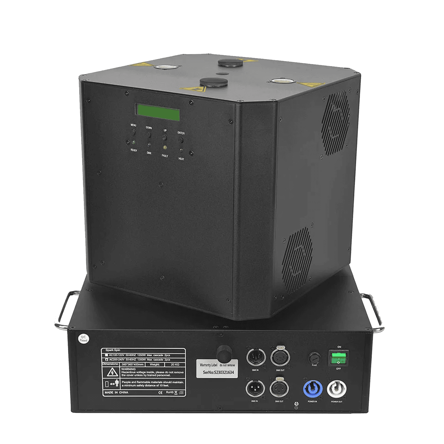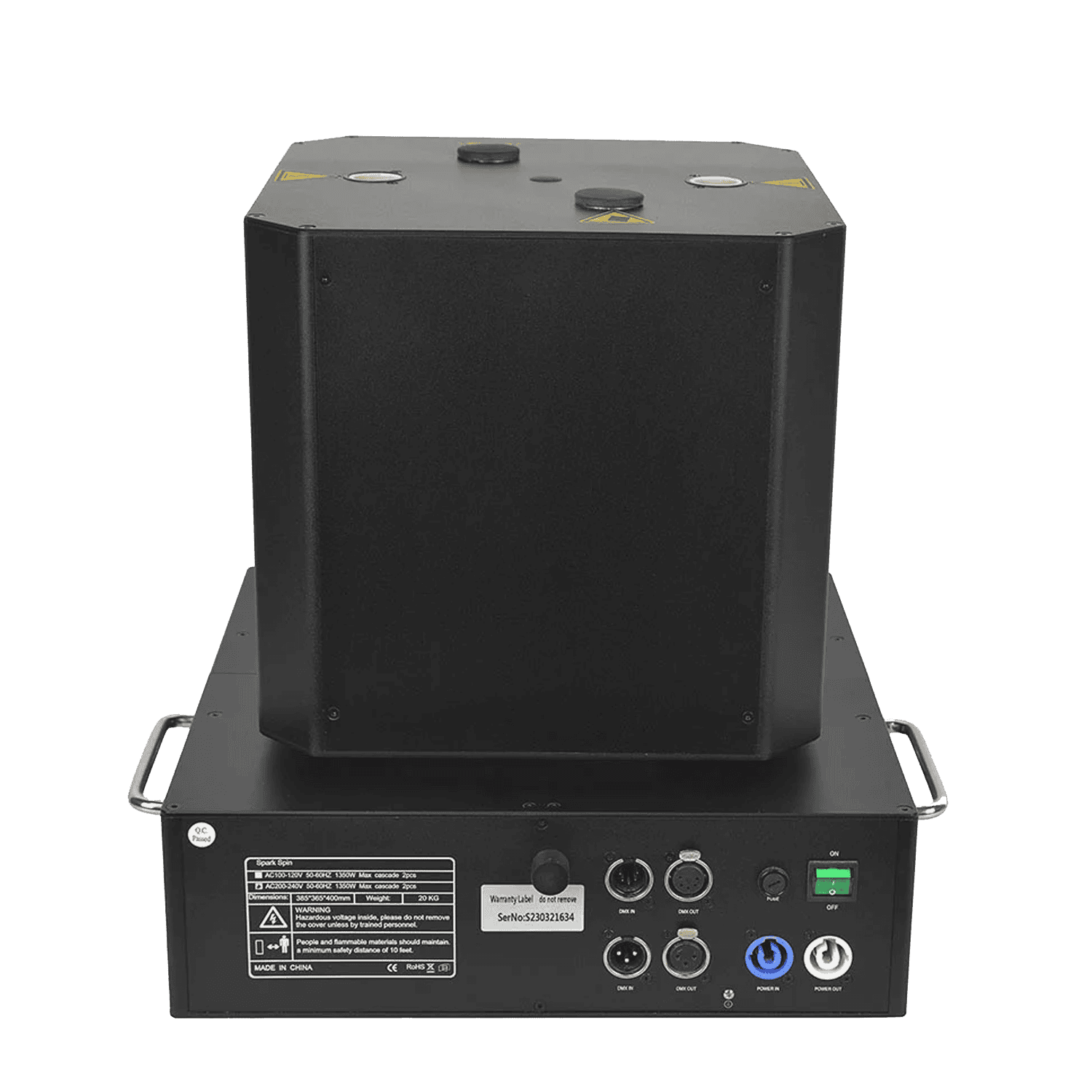 2 Spark Rotanti 360° Fontane a scintille fredde a Doppia uscita Brand NLIGHTING complete di Flycase
