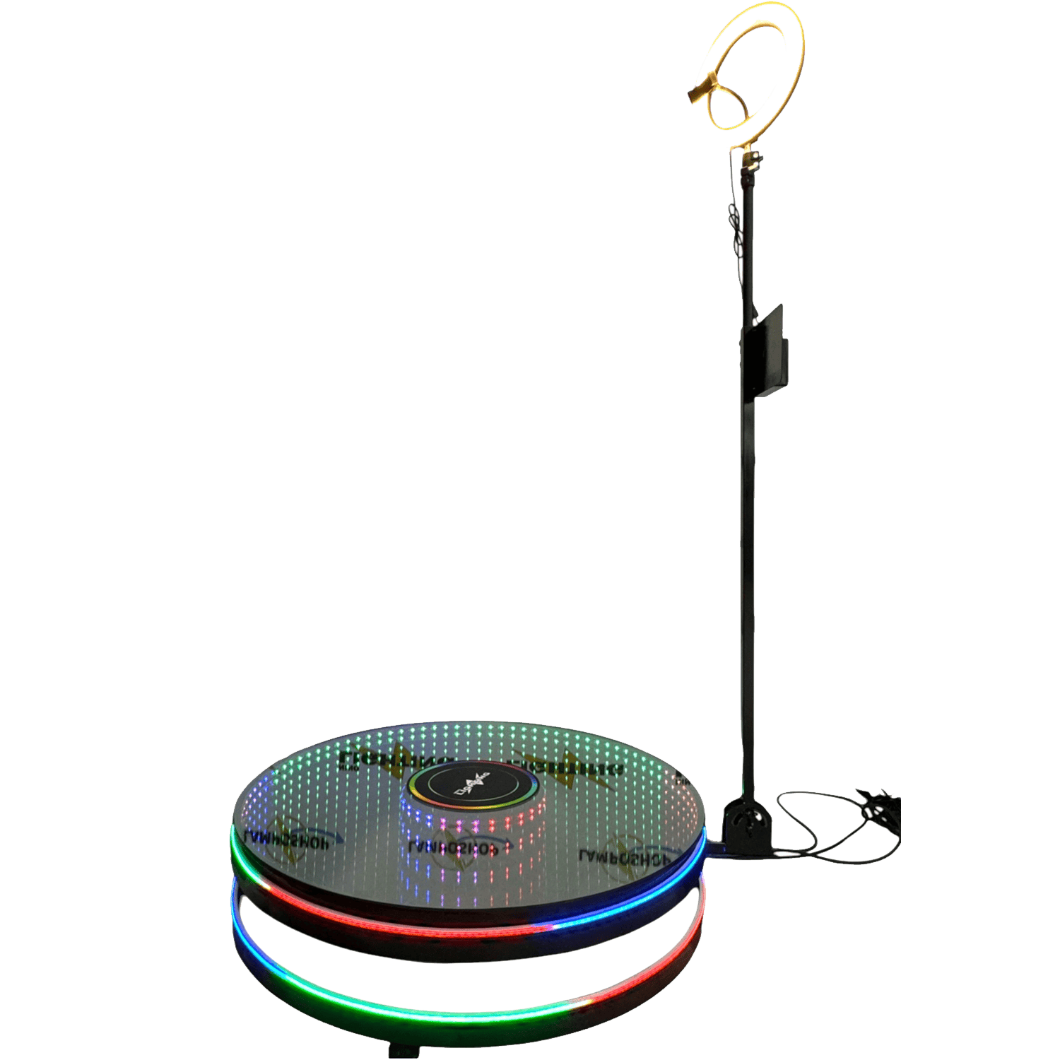 Infinity Photo BOOTH a Rotazione Continua Foto 360° con Anello di Luce SELFIE e Poggiapiedi RGB FlyCase Incluso
