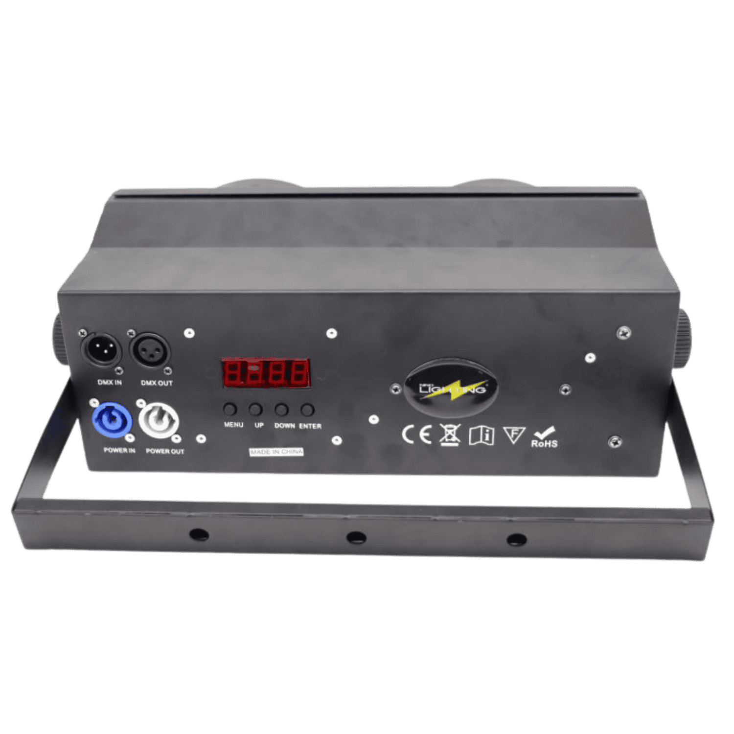 Dal punto di vista del controllo, l’accecatore supporta diverse modalità operative pensate per soddisfare sia utenti esperti sia installazioni rapide. Il controllo DMX512 con configurazione a 4 o 8 canali consente una gestione completa dell’intensità luminosa, delle tonalità e degli effetti direttamente da console luci professionali. In alternativa, sono disponibili modalità automatica, master/slave e sound attiva, che sincronizza gli effetti luminosi al ritmo della musica rendendo il dispositivo perfetto anche per DJ e piccoli eventi.