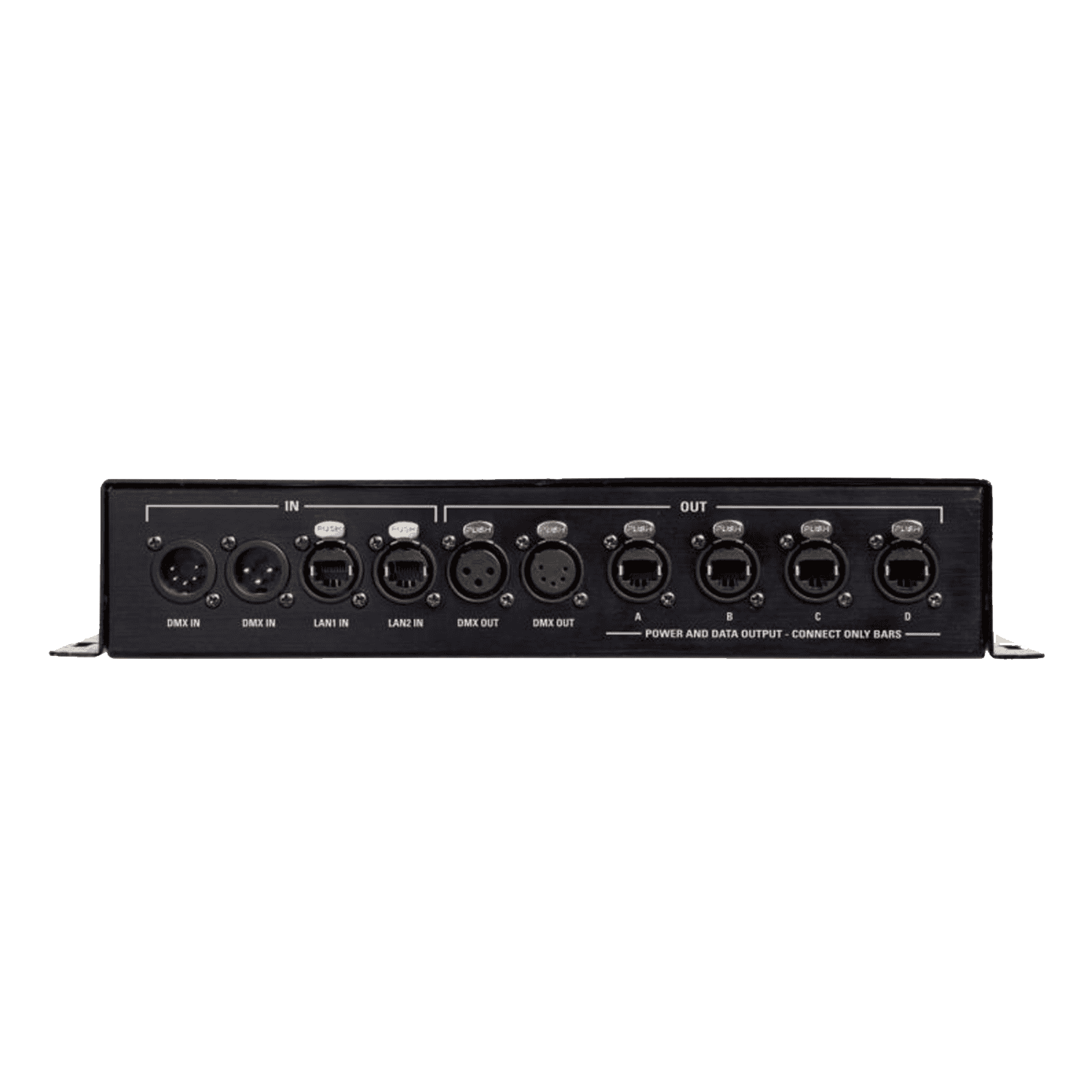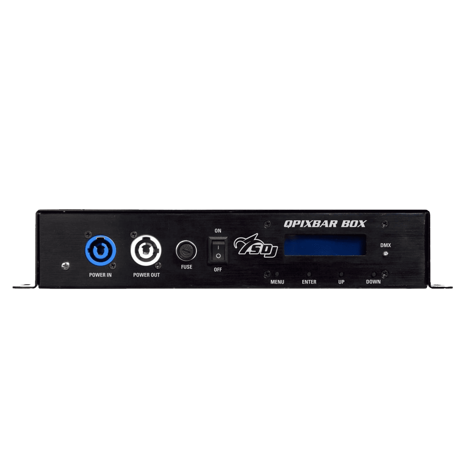 Il settaggio ed il controllo è affidato al “QPix Bar control box” che permette di pilotare un massimo di 16 barre offrendo due possibilità di controllo, DMX ed ARTNet, protocollo già a bordo del box.