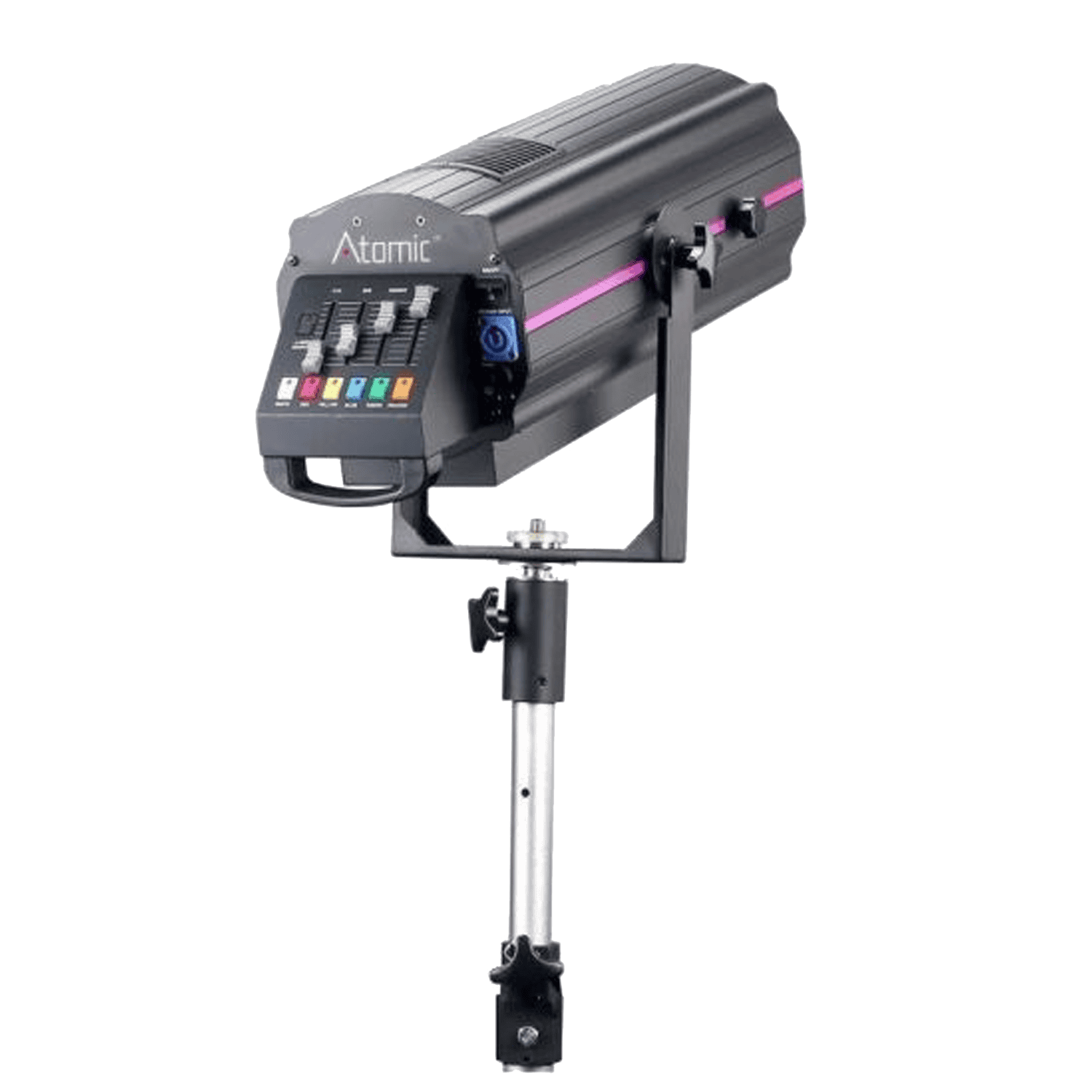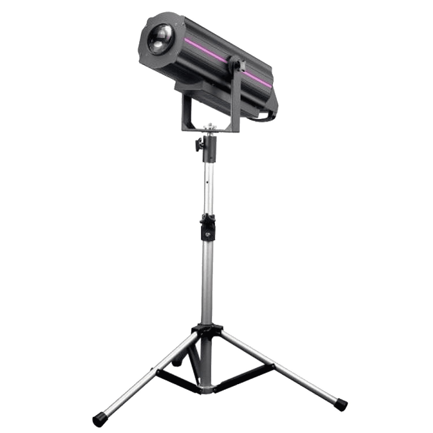 Faro ad alta potenza con Led da 350 Watt, รจ un seguipersona professionale in grado di generare un potente fascio luminoso adatto ad ambienti medio e grandi con distanze fino a 50 metri. ร dotato di filtri colore e puรฒ essere controllato tramite il pannello di controllo o tramite DMX. Questo bundle include il supporto in metallo ed il Flight Case per il trasporto.