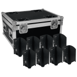 Baule FlightCase con 8pz Faretti Uplight NERI Smart Battery LED RGBWA-UV WiFi a Batteria e Telecomando Wireless