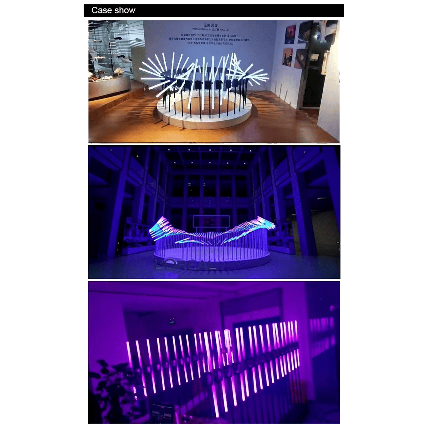 I tubi a LED RGB rotanti 360° hanno prestazioni elevate essendo luminose con luce forte dinamica e intensa. La particolarità dei nostri tubi LED è la rotazione a 360° girando risulta essere particolare creando giochi luce tra loro. I Tubi a LED si adattano perfettamente per: Studi televisivi, camerette, gaming room, cinema, teatri, mostre, pub, locali, discoteche. I nostri Tubi luminosi sono realizzati con materiali di alta qualità. Il prezzo è riferito a 20 tubi luminosi completo di cavi e Flight case.
