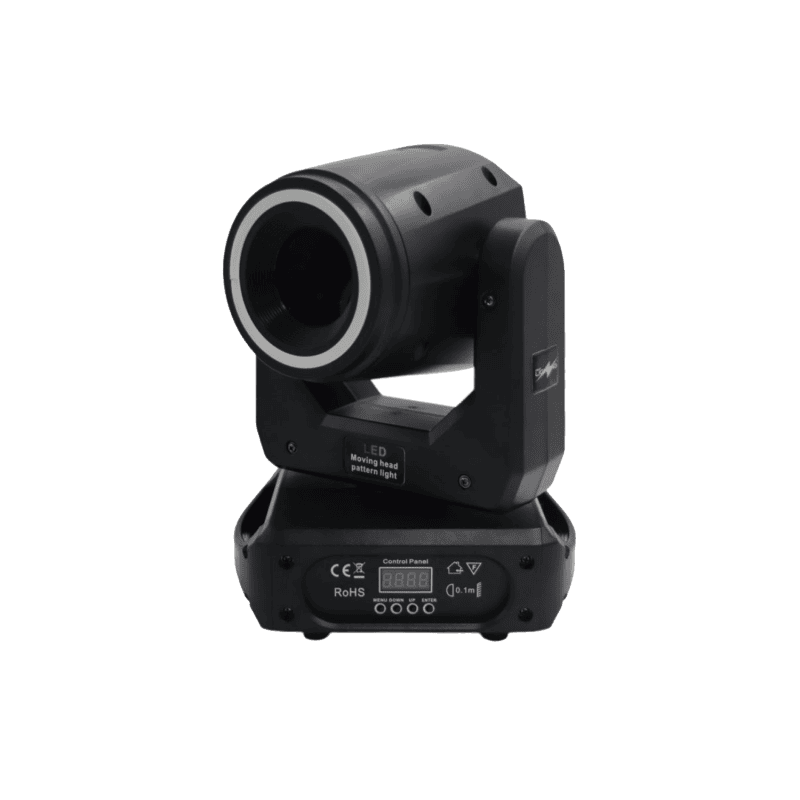 Dal punto di vista creativo, la testa mobile offre una ricca dotazione di effetti. Dispone di gobo rotanti e gobo fissi, che consentono di proiettare immagini e forme luminose di grande impatto scenografico. La presenza dei prismi amplifica ulteriormente l’effetto visivo, creando moltiplicazioni del fascio e giochi di luce spettacolari. La ruota colori, con colori saturi e transizioni fluide, permette di ottenere effetti arcobaleno e mezzi colori, ideali per spettacoli dinamici e ambientazioni suggestive.