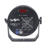Dal punto di vista del controllo, il Par LED supporta il protocollo DMX512, standard internazionale nel settore dell’illuminazione professionale. I canali DMX selezionabili in modalità 4 o 8 canali consentono di scegliere tra una gestione semplice e immediata oppure un controllo più dettagliato dei parametri luce. Le connessioni DMX IN e OUT XLR permettono il collegamento in cascata con altri proiettori, facilitando la creazione di impianti luce complessi e sincronizzati.