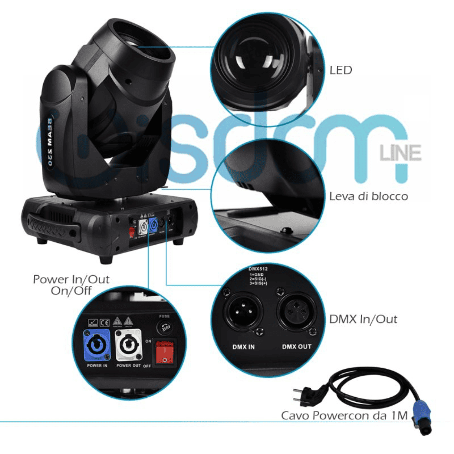 La coppia di Teste Mobili BEAM TOP 230W 7R rappresenta una soluzione di illuminazione professionale di altissima qualità, pensata per service audio-luci, discoteche, concerti, festival ed eventi live dove sono richieste prestazioni elevate, affidabilità assoluta e resa luminosa costante nel tempo. Questo modello si posiziona nella fascia top di gamma, grazie a componenti selezionati e a una costruzione meccanica ed elettronica curata in ogni dettaglio.