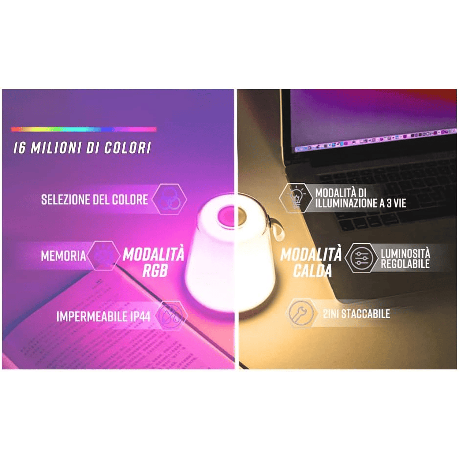 Lampada da tavolo e scrivania LED RGB Senza Fili ricaricabile USB con controllo Soft Touch