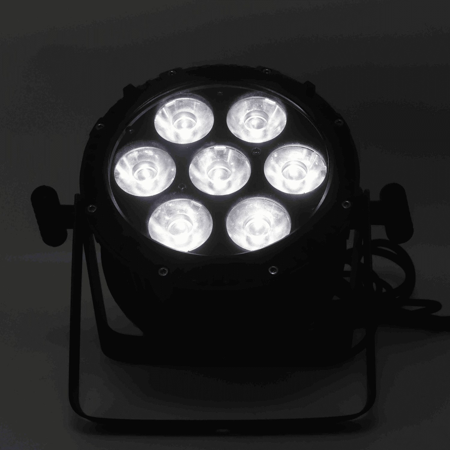 Il Par LED RGBW 7X20W puรฒ emettere diverse tipologie di luci con un’elevata disponibilitร di miscelazione di colori disponibili. Il faretto NLIGHTING PAR LED รจ dotato di un vetro resistente con gradazione IP65, quindi adatto sia per uso interno ed esterno. All’interno dello scatolo oltre il Par LED presente anche un cordino di sicurezza e un gancio aliscaf per attaccare il Par LED al traliccio o Americana. Presenti anche le connessioni DMX IN e OUT e Alimentazione SHUCKO. Il PAR LED 7X20W dispone delle seguenti modalitร : Automatico, Ritmo di musica, Dmx 512, funzione Strobo e Dimmer regolabile per l’intensitร della luce da 0 a 100%. Il Par LED 7X20 puรฒ essere installato in numerose occasioni tra cui: Bar, Sale Per feste, Discoteche sia al chiuso che all’aperto.
