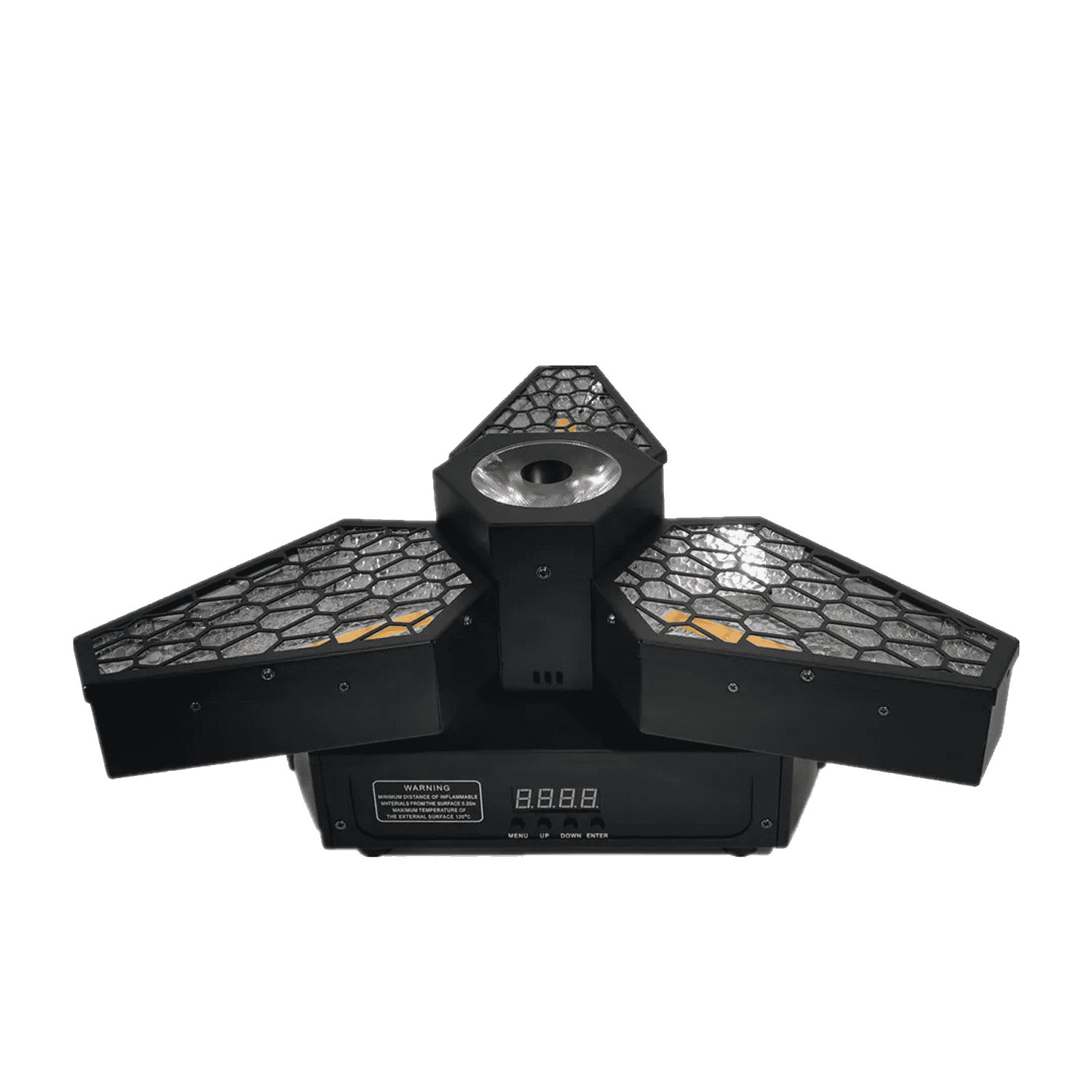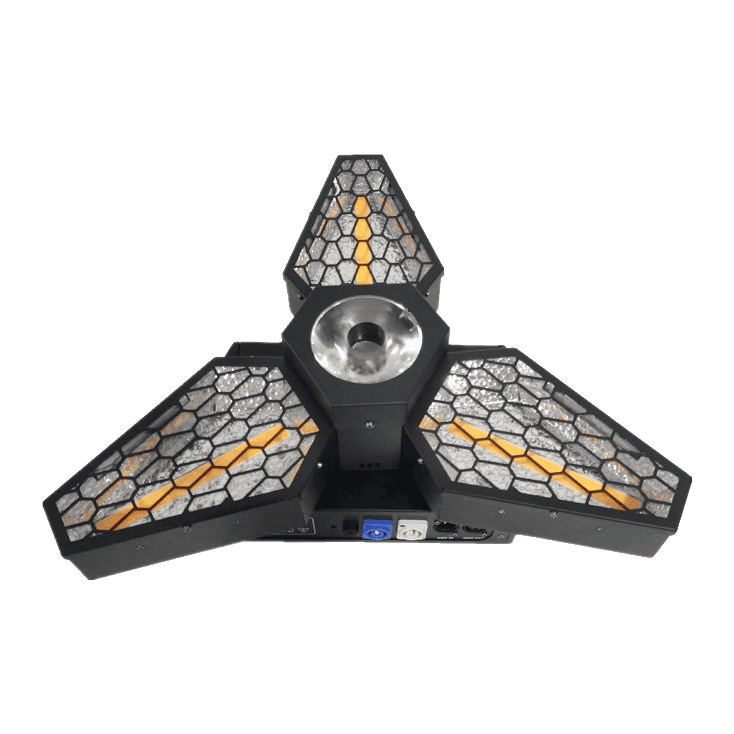 Il movimento rotante a 360° rappresenta uno dei punti di forza principali del prodotto. La rotazione fluida consente di distribuire la luce in modo dinamico nello spazio, creando effetti scenici continui senza necessità di teste mobili tradizionali. Questo lo rende particolarmente efficace per installazioni scenografiche, palchi DJ, club e ambientazioni immersive.