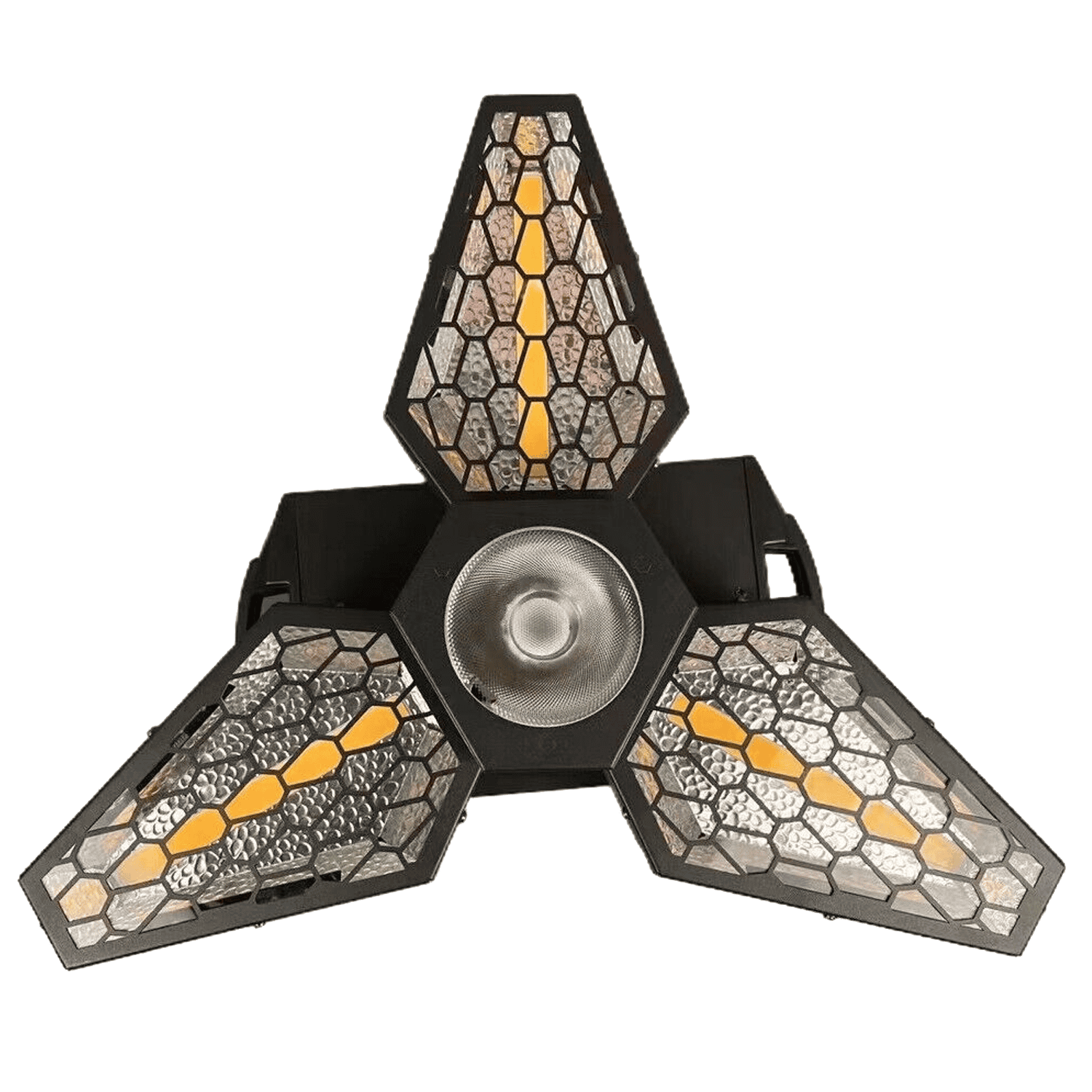 Il design distintivo del Portflower richiama l’estetica vintage delle lampade sceniche classiche, reinterpretata attraverso tecnologie moderne ad alta efficienza luminosa. Il sistema integra tre illuminatori LED COB da 60W con tonalità di luce calda, capaci di riprodurre un effetto alogeno naturale e avvolgente, ideale per creare atmosfere eleganti e cinematografiche durante eventi live, matrimoni, spettacoli teatrali e installazioni artistiche.