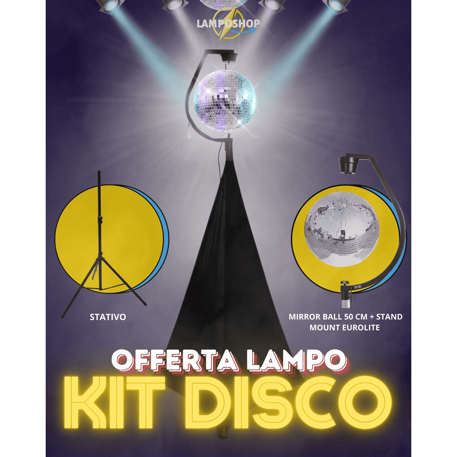 Kit Disco completo con supporto sfera mirrorball stativo con copertura offerta Lampo