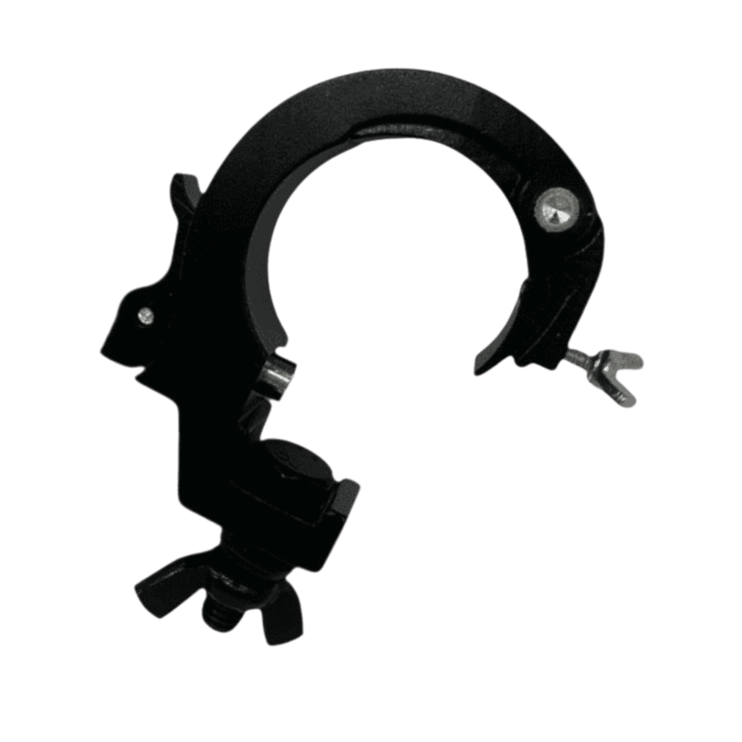 Gancio aliscafย in alluminio pressofuso per carichi pesanti (SWL 100Kg), compatibile con tubi da 32-35mm. Il design รจ stato concepito per non graffiare e danneggiare le Truss, assicurando una connessione ultra-rapida mediante soltanto due giri della manopola.