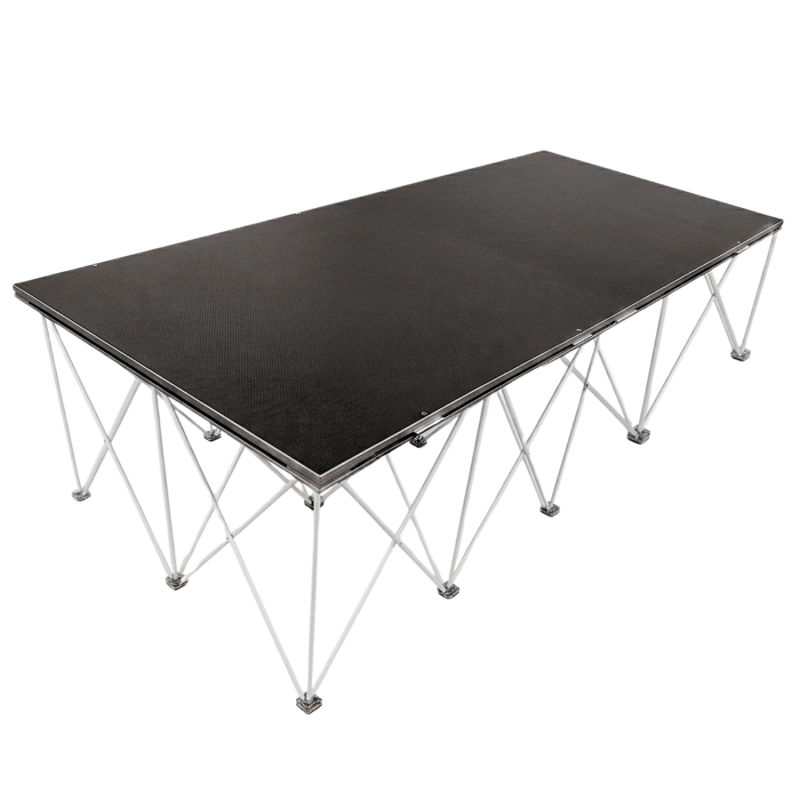 Base telescopica h 40 cm per pedana modulare ZZIPP ZZTM100, riser professionale in alluminio anodizzato con teste di appoggio in nylon, portata 800 kg/mยฒ, dimensioni 100×100 cm, richiudibile senza attrezzi, disponibile singolarmente o completa di pedana modulare per palchi
