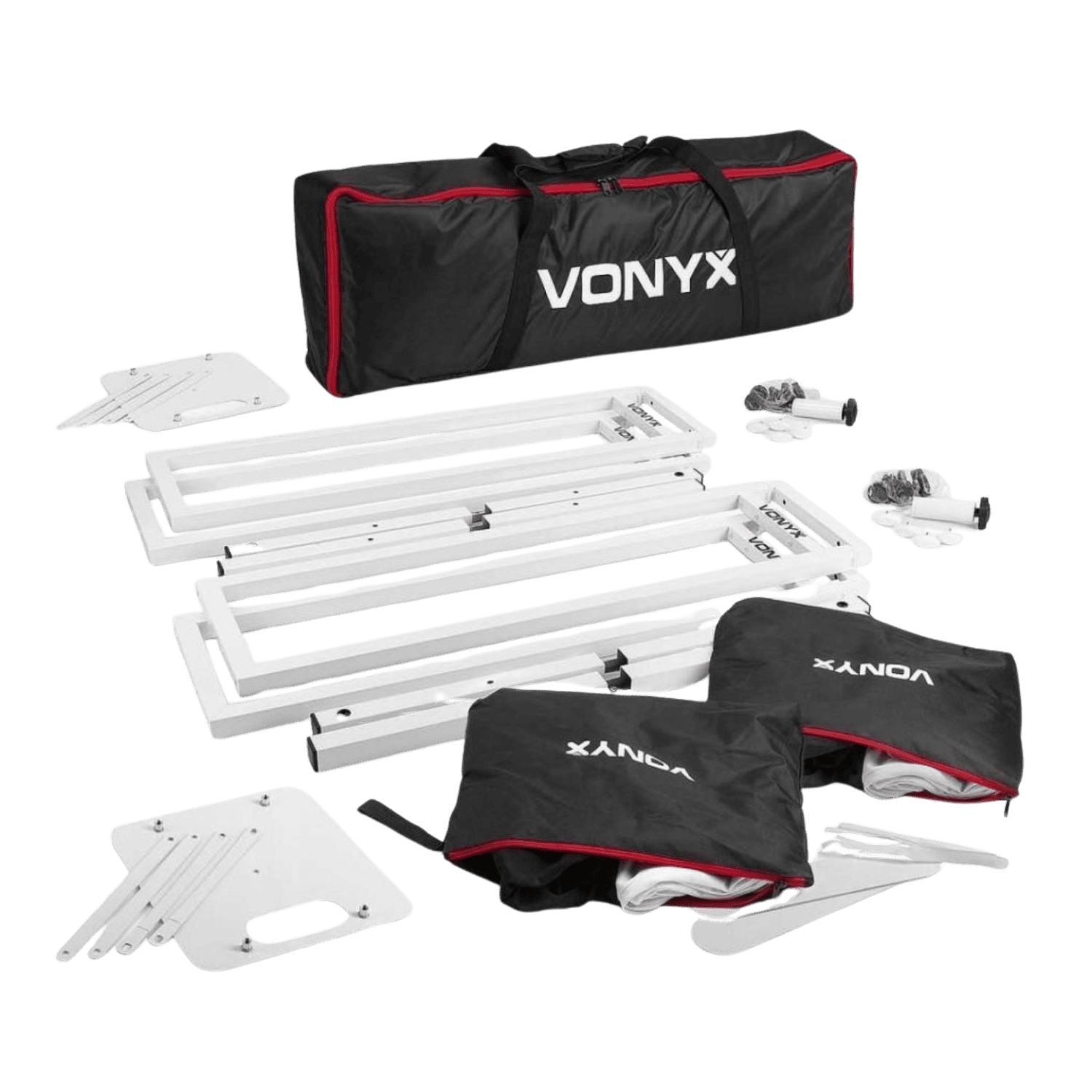 Il Vonyxย DJP165 Plinth รจ un supporto da palco regolabile in altezza progettato per apparecchi di illuminazione, come teste mobili, nonchรฉ per altoparlanti PA o altre applicazioni di visualizzazione. A differenza di altri supporti regolabili che utilizzano dadi ad alette per modificare l’altezza del supporto, il DJP165 viene regolato in altezza istantaneamente premendo ilย meccanismo di regolazione interna Vonyx Easy appositamente progettato, che sblocca tutti e quattro i blocchi contemporaneamente. Il supporto del podio รจ in finitura verniciata a polvere per una lunga durata, sono inclusi una copertura in lycra nera e una bianca, una morbida borsa per il trasporto e cuscinetti in schiuma antiscivolo.
