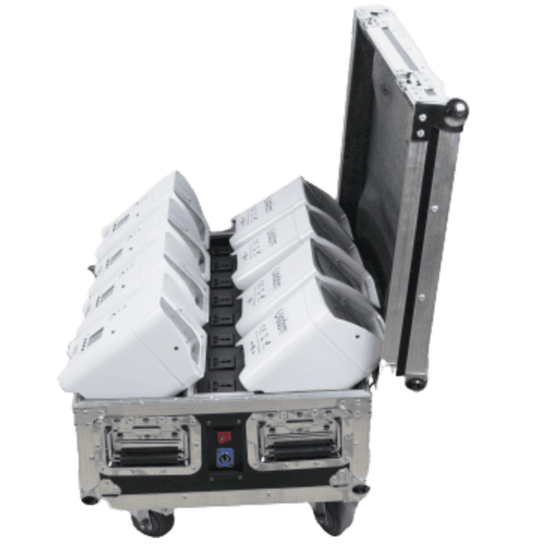 Il cuore del sistema luminoso è costituito da LED RGB+W ad alta efficienza, capaci di produrre effetti strobo estremamente brillanti e uniformi. Questa configurazione permette sia l’utilizzo classico come strobo ad impatto scenico sia la creazione di sequenze luminose avanzate tramite pixel mapping, funzione particolarmente apprezzata nelle produzioni moderne dove luce e ritmo musicale devono integrarsi perfettamente.