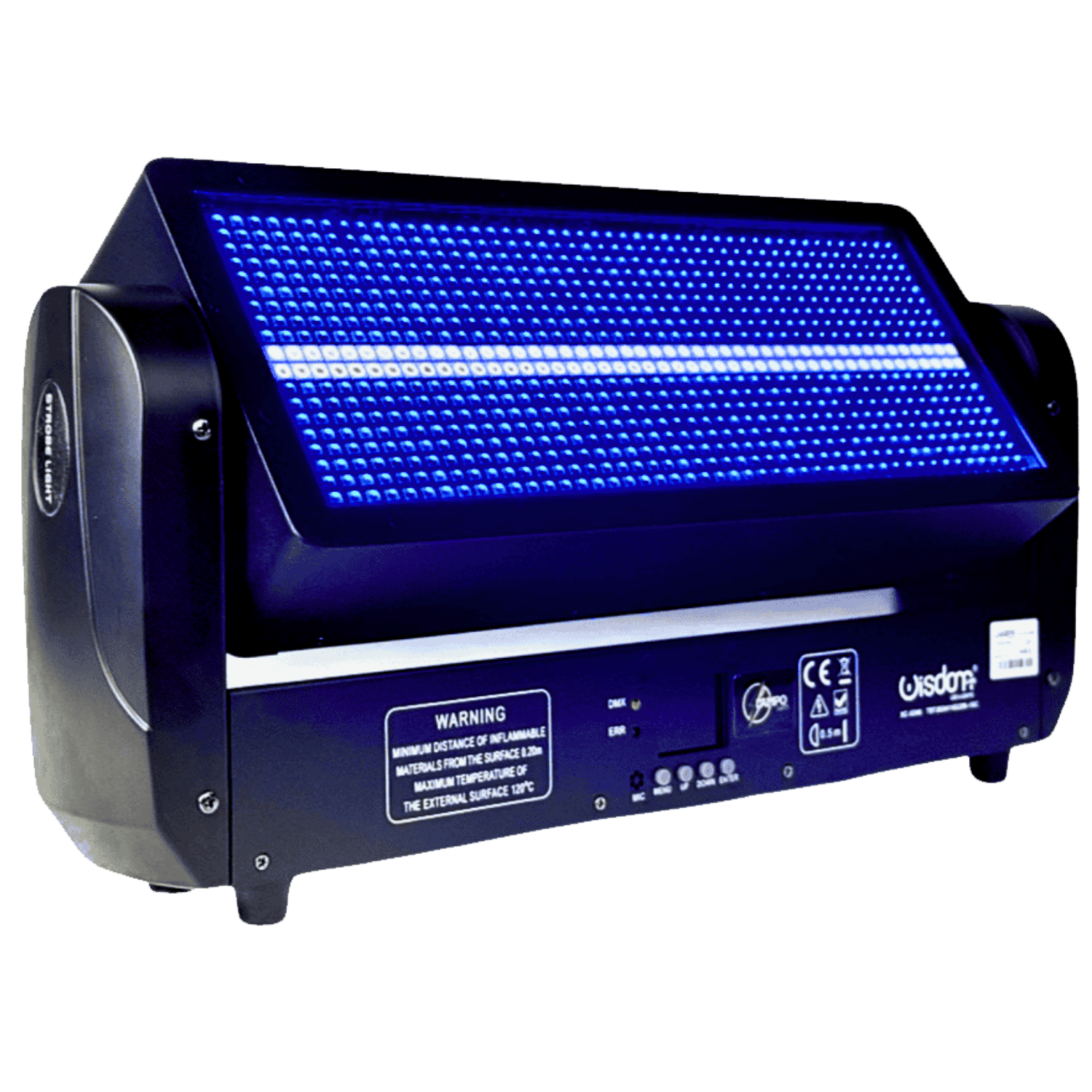 Il controllo avviene tramite protocollo DMX512, con modalità selezionabili da 8, 20 o 52 canali DMX, permettendo sia un utilizzo semplice e immediato sia una programmazione avanzata per setup professionali complessi. Oltre alla modalità DMX, la strobo supporta anche funzionamento automatico e modalità sound active, ideale per DJ set e installazioni dove è richiesta sincronizzazione immediata con la musica.