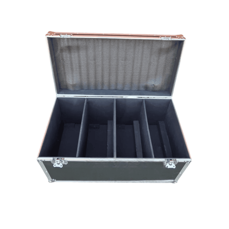 IL Baule Flight Case rigido per 8 mattonelle LED Wall รจ progettato per offrire la massima sicurezza, praticitร e resistenza durante il trasporto, si tratta di una soluzione indispensabile per tecnici dellโilluminazione, DJ, service audio-luci. Allโinterno del baule sono presenti otto vani per mettere perfettamente le mattonelle LED Wall, mantenendole stabili e protette da urti. La struttura del baule รจ costruita con pannelli multistrato rivestiti e rinforzati in alluminio anodizzato. L’ apertura e chiusura a farfalla in acciaio garantiscono una tenuta salda e sicura, mentre le maniglie laterali facilitano il trasporto.