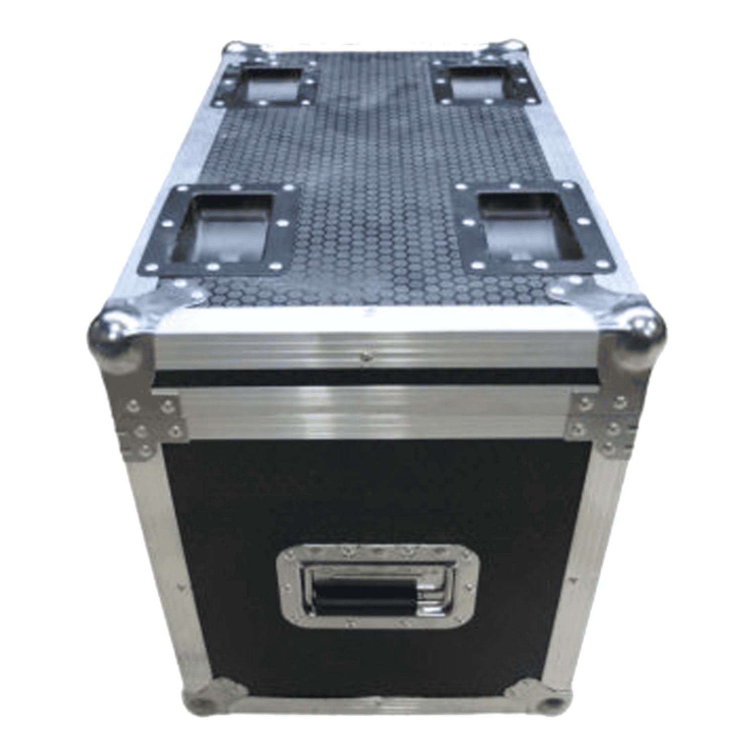 Baule Flight Case vuoto rigido per il trasporto di due teste mobili Aura Wash 19×15. Aprendo il baule avremo 2 spazi vuoti dove poter mettere al sicuro 2 teste mobili. Il baule รจ resistente con bordi e rifiniture in alluminio, con maniglie laterali e chiusure a farfalla. Flight case linea professionale Wisdom.