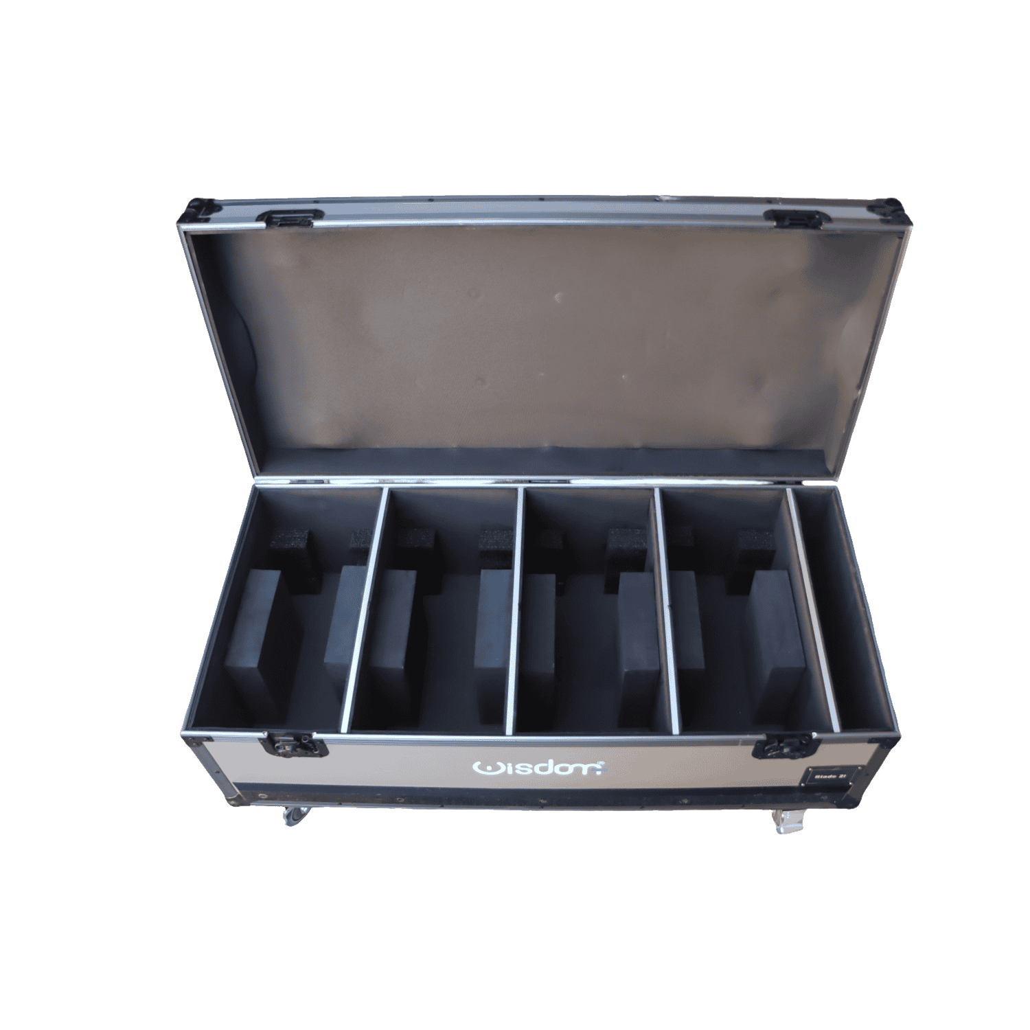 Baule flightcase vuoto rigido per il trasporto di 4 barre LED BLADE 2i. Aprendo il baule avremo 4 spazi vuoti dove poter mettere al sicuro le nostre barre LED. Il baule รจ realizzato con materiale resistente con bordi e rifiniture in alluminio, con maniglie laterali ad entrambi i lati e chiusura a farfalla. Il baule รจ dotato di ruote per facilitare comodamente il trasporto.