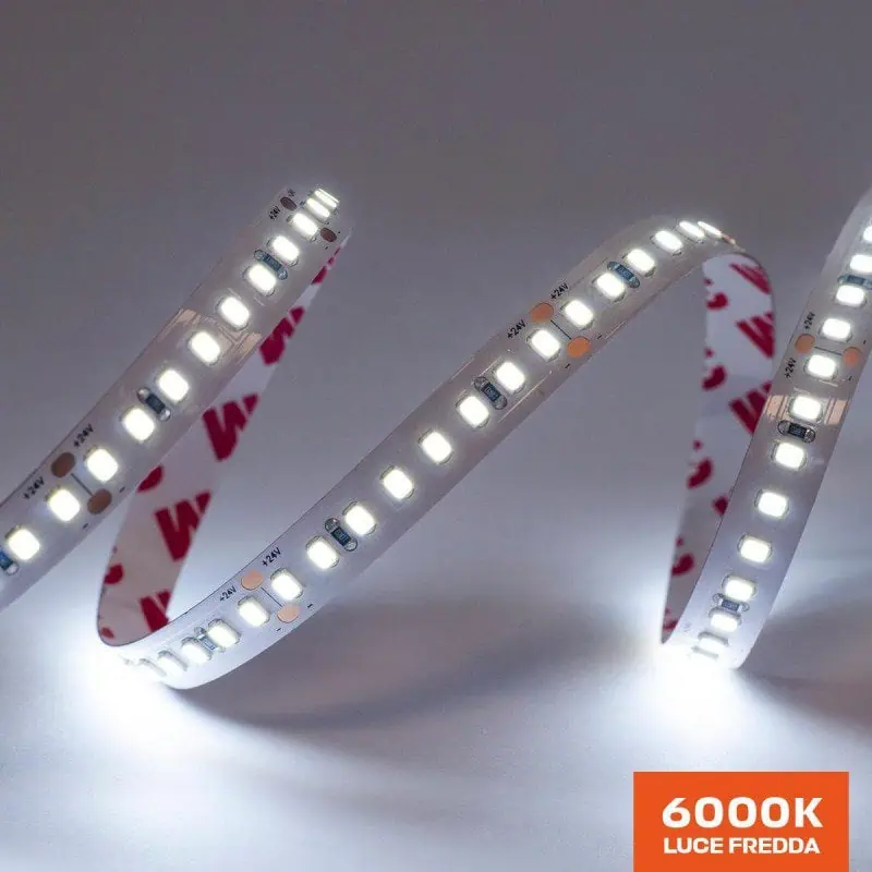 Striscia Led 2835 da 5 metri, montata su biadesivo della 3M.