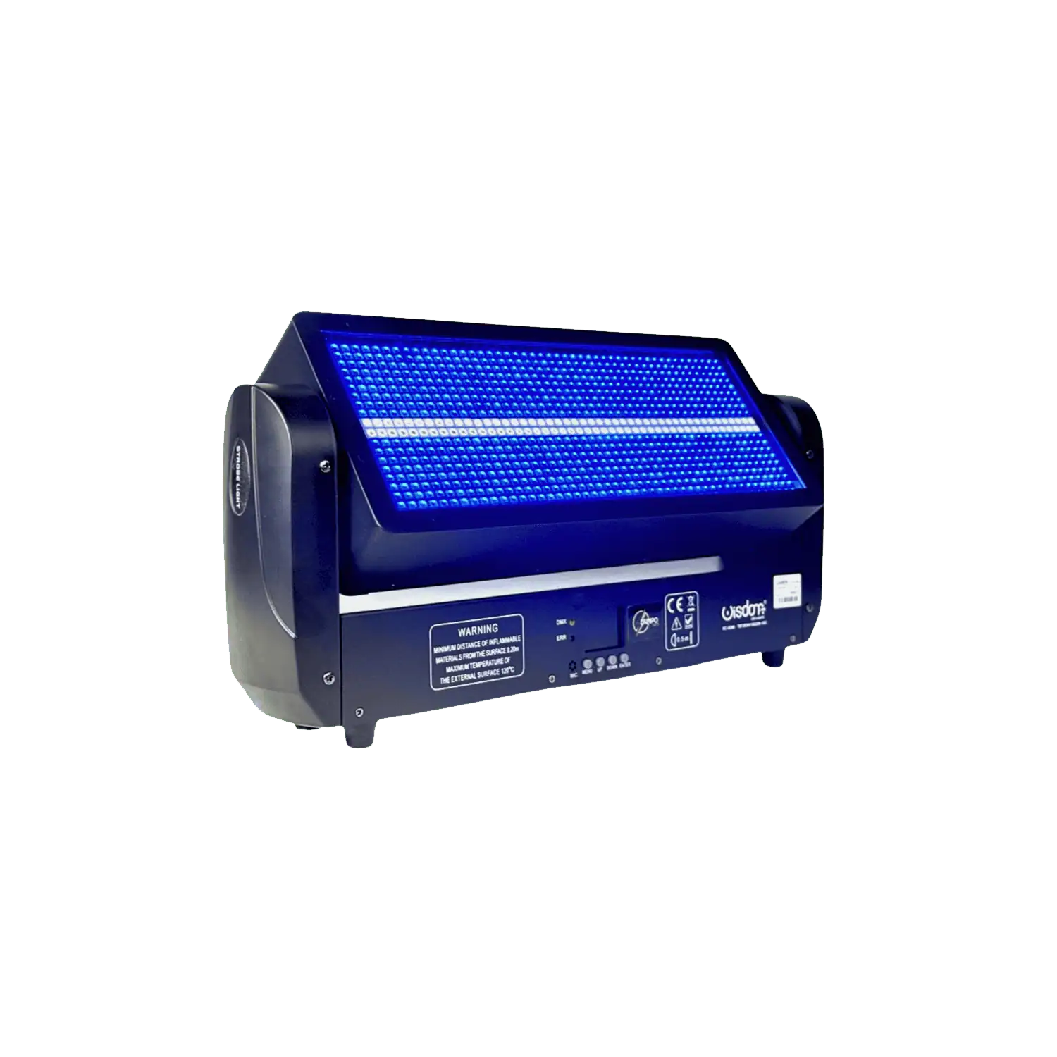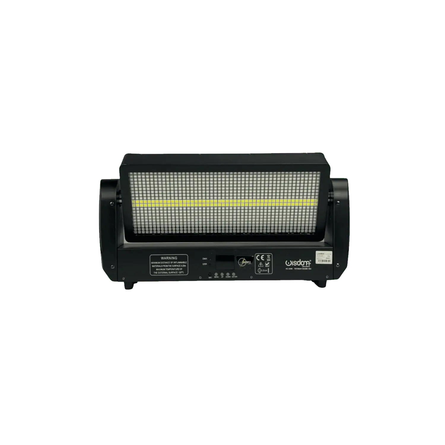 Il controllo avviene tramite protocollo DMX512, con modalità selezionabili da 8, 20 o 52 canali DMX, permettendo sia un utilizzo semplice e immediato sia una programmazione avanzata per setup professionali complessi. Oltre alla modalità DMX, la strobo supporta anche funzionamento automatico e modalità sound active, ideale per DJ set e installazioni dove è richiesta sincronizzazione immediata con la musica.