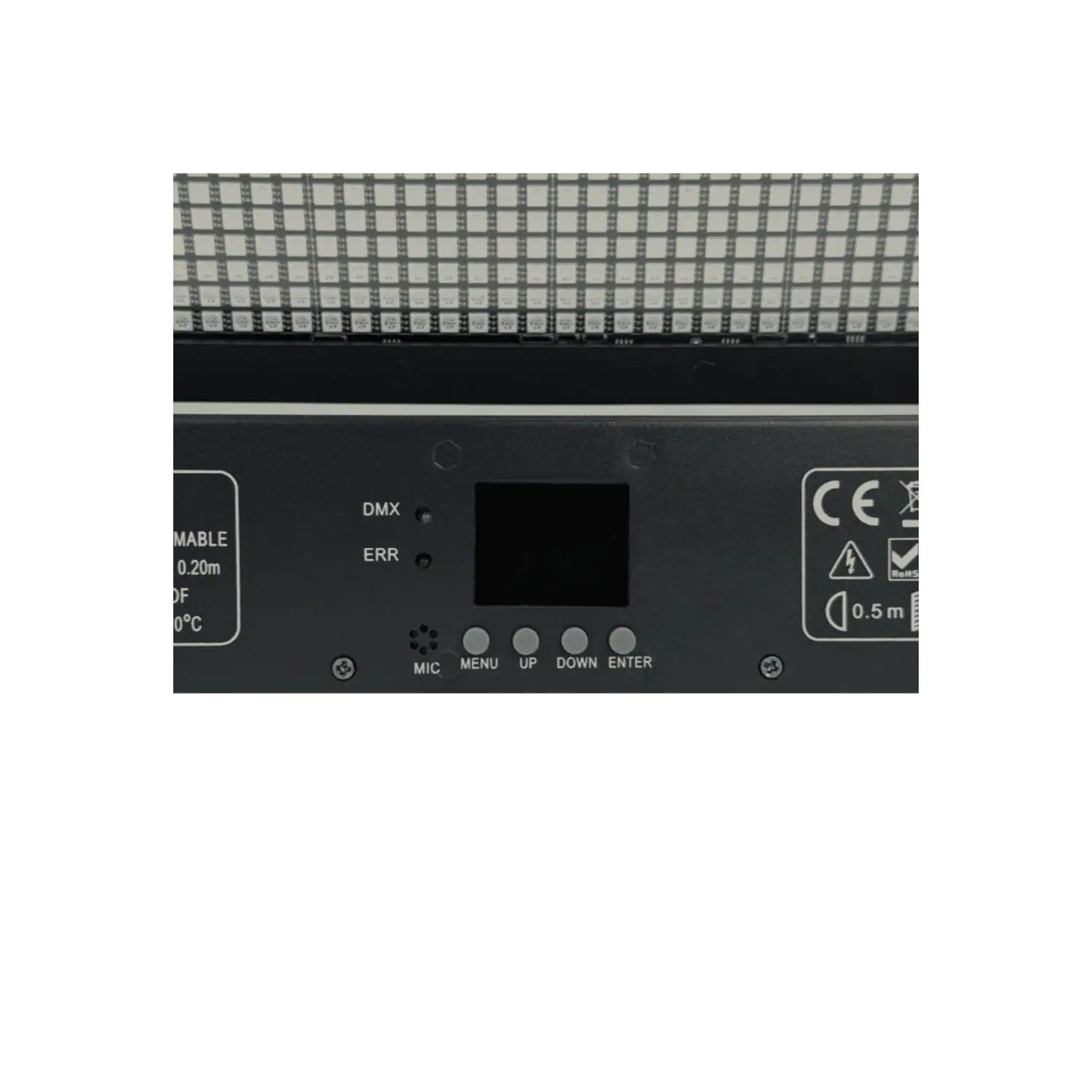 Grazie alla gestione indipendente dei LED RGB e dei LED bianchi, il dispositivo supporta avanzate funzioni di pixel mapping, offrendo al lighting designer un controllo creativo completo. È possibile programmare animazioni luminose complesse, effetti chase e variazioni cromatiche dinamiche, aumentando notevolmente le possibilità artistiche rispetto alle strobo tradizionali.