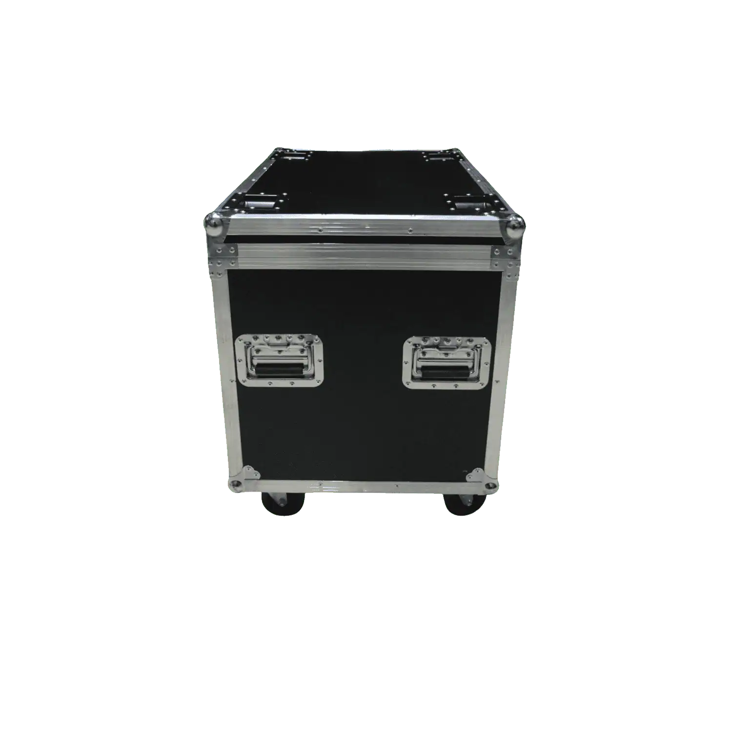 Baule flightcase vuoto rigido ideale per il trasporto di 8 mattonelle dance floor. Aprendo il baule avremo un ampio spazio per il trasporto delle mattonelle per una sicurezza assicurata per lo spostamento. Il baule è realizzato con materiale resistente con bordi e rifiniture in alluminio, ruote per lo spostamento, maniglie laterali ed apertura e chiusura a farfalla.