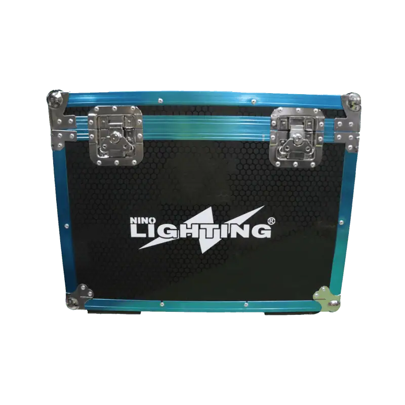 Baule flightcase vuoto rigido per il trasporto di sei accecatori atomic. Aprendo il baule avremo 6 spazi vuoti dove poter mettere al sicuro gli accecatori. Il baule è realizzato con materiale resistente con bordi e rifiniture in alluminio, con maniglie laterali ad entrambi i lati e chiusura a farfalla. Il baule è dotato di ruote risultando comodo per il trasporto sicuro ed efficace.