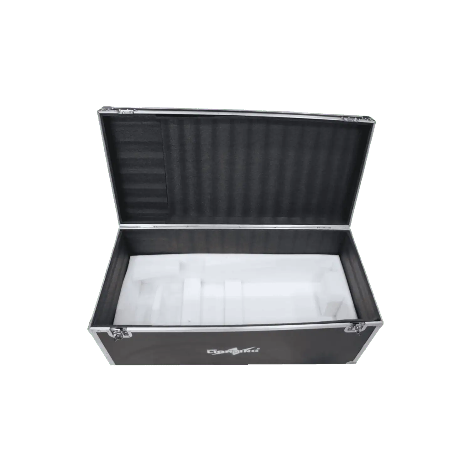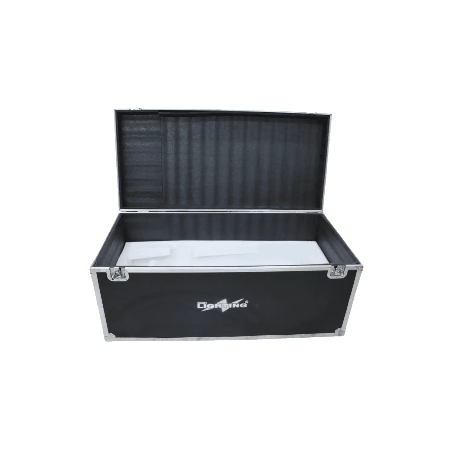 Baule flightcase vuoto rigido ideale per il trasporto multi uso per luci da spettacolo, cavi di alimentazione e possibilità di trasportare 10 mattonelle dance floor. Aprendo il baule avremo un ampio spazio per il trasporto con spugna interna per maggior protezione e sicurezza per lo spostamento. Il baule è realizzato con materiale resistente con bordi e rifiniture in alluminio, con maniglie laterali ed apertura e chiusura a farfalla.