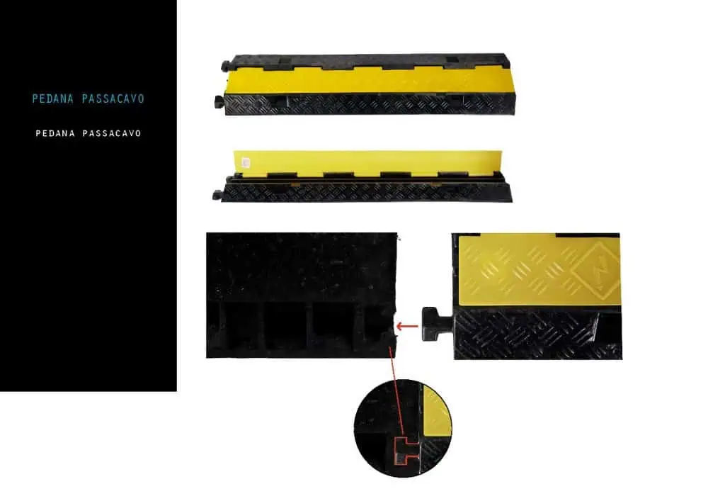 Pedana Passacavo carrabile rampa a forma di dosso calpestabile Modulare a 2 vie Canalina coprifilo pedonabile e carrabile WISDOM per copertura e protezione cavi eventi e live in strada e all’aperto