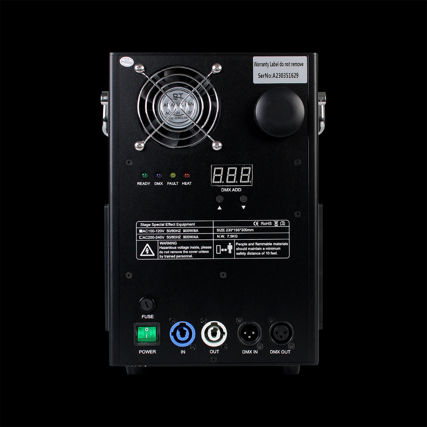 Questa macchina per effetti speciali è stata ideata per offrire massima praticità e flessibilità di controllo. Grazie alla presenza di connessioni DMX IN/OUT a 3 pin e PowerCon IN/OUT, la SPARK 900 può essere facilmente integrata in setup professionali di illuminazione e spettacolo. Inoltre, il telecomando wireless incluso permette di gestire a distanza l’attivazione e la regolazione degli effetti, rendendo l’esperienza d’uso estremamente intuitiva e comoda anche per operatori non esperti.