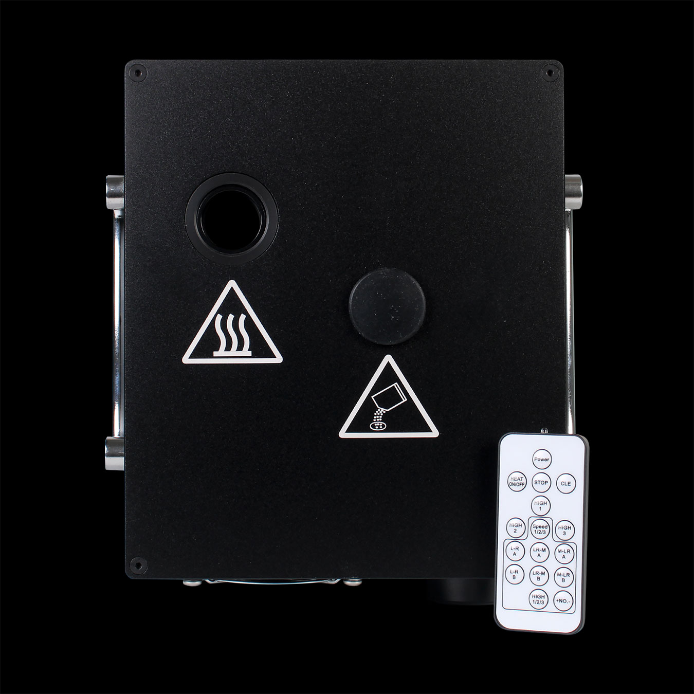 Un altro vantaggio importante è la manutenzione minima richiesta. La macchina è costruita con materiali di alta qualità che assicurano una lunga durata e stabilità operativa. Il sistema di raffreddamento integrato con ventola posteriore assicura un funzionamento continuo e sicuro, anche durante spettacoli di lunga durata. La maniglia superiore in acciaio inox ne facilita il trasporto e l’installazione, rendendola perfetta per chi lavora in mobilità o all’interno di produzioni itineranti.