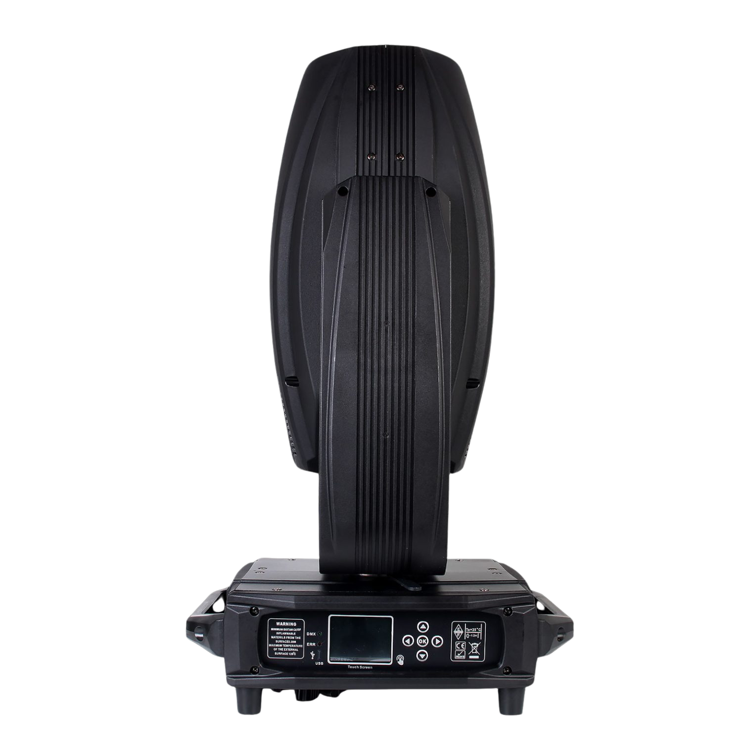 Il sistema di atomizzazione individuale e i due prismi rotanti da 8 e 16 facce ampliano ulteriormente le possibilità creative, generando effetti caleidoscopici, moltiplicazioni del fascio e proiezioni tridimensionali di grande impatto visivo. Tutti i movimenti della testa mobile sono gestiti da 15 motori ad alta precisione, con sistema XY a tre fasi, che assicura fluidità, silenziosità e reattività anche durante le transizioni rapide di pan e tilt.